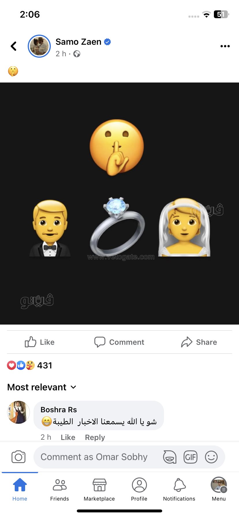 وأثار سامو زين التساؤلات الكثيرة حول زواجه حيث ظن البعض أن يروج لنبأ زواجه قريبًا بطريقة غير مباشرة.
