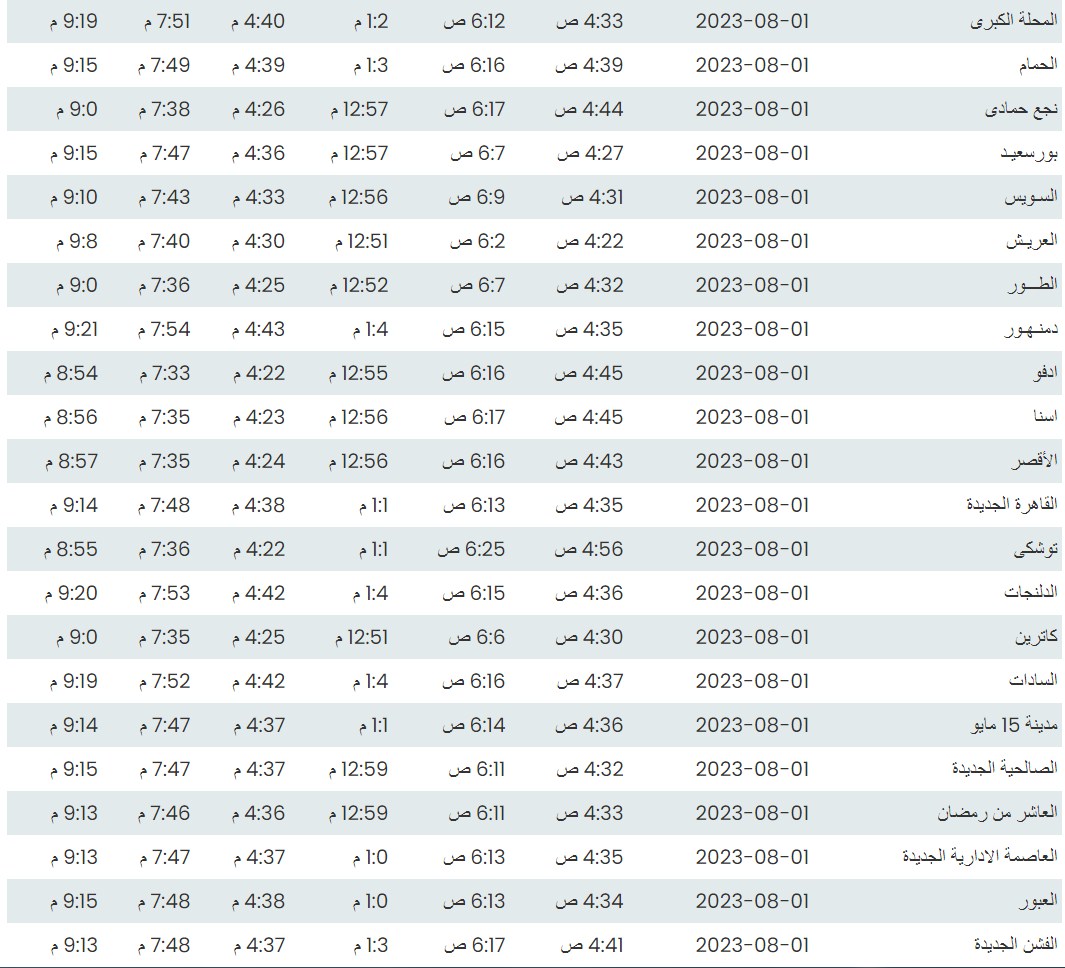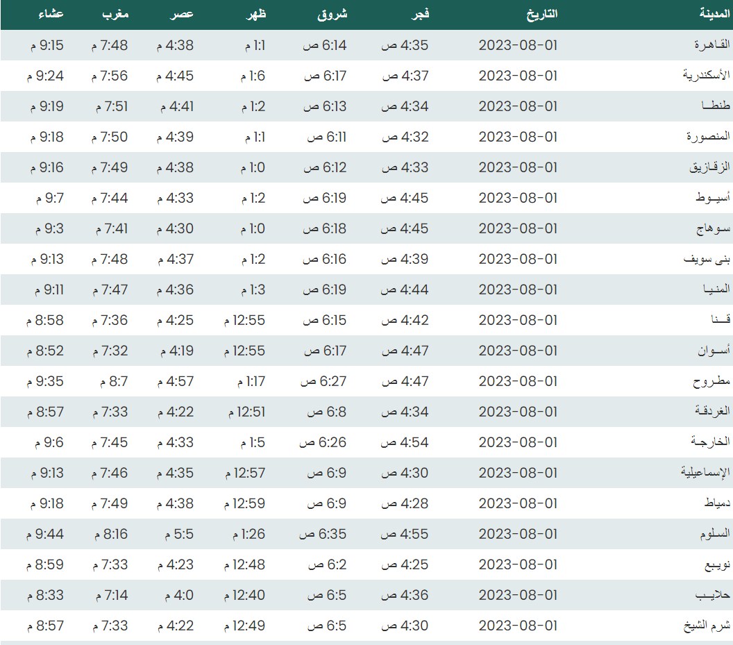 مواقيت الصلاة اليوم بتوقيت القاهرة