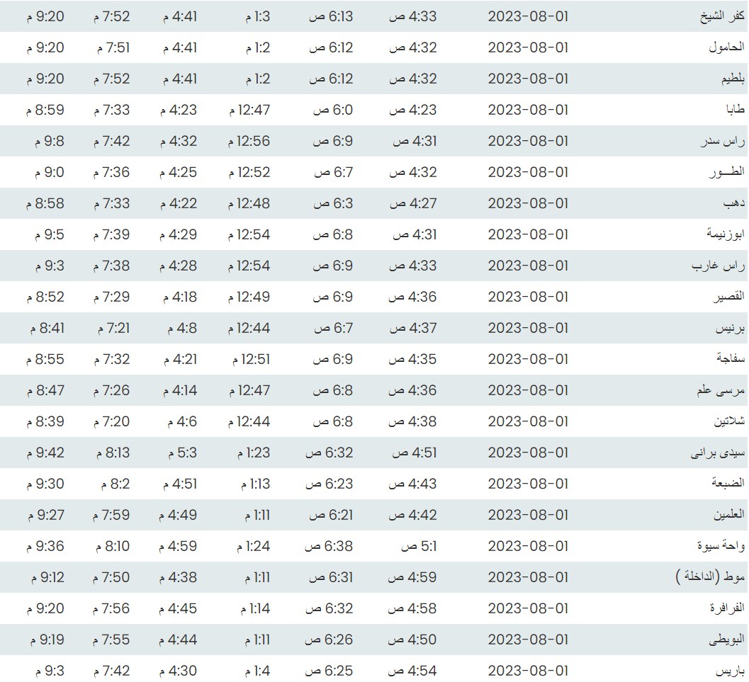 مواقيت الصلاة اليوم بتوقيت الإسكندرية