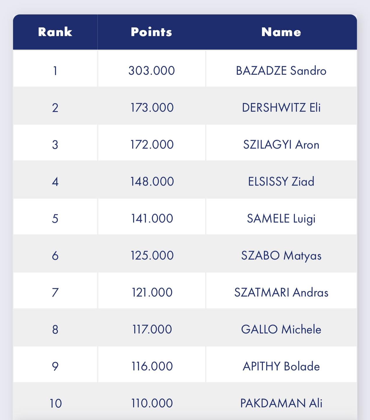 زياد السيسي يفوز بالمركز الرابع في تصنيف الاتحاد الدولي للسلاح