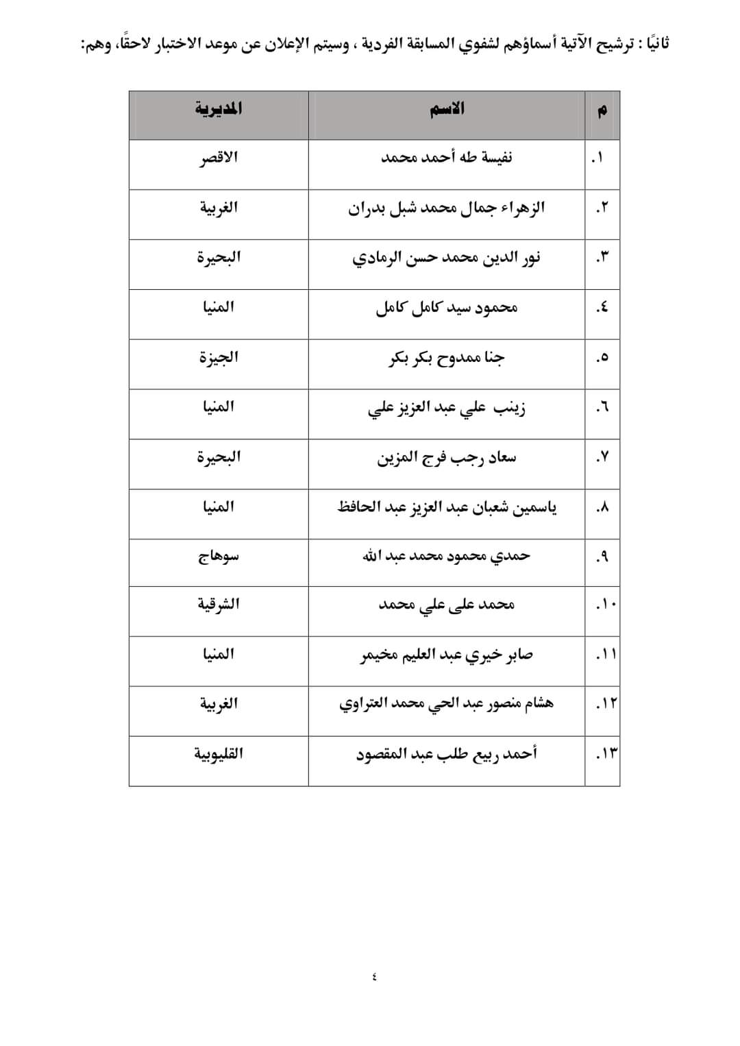 بالأسماء، المرشحون من الأسر القرآنية للاختبار الشفوي