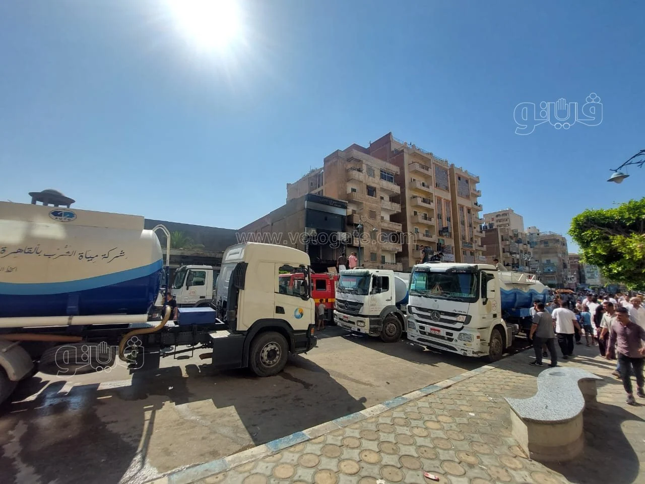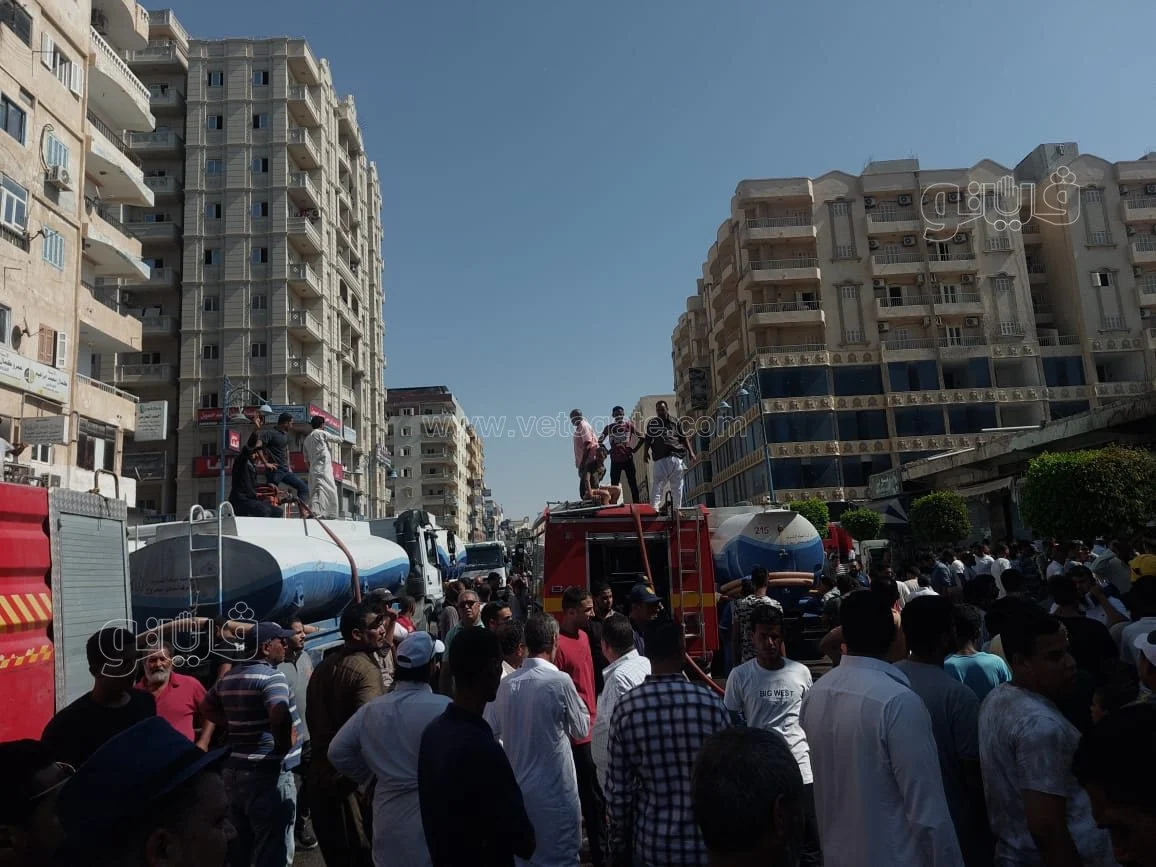 وقامت شركة مياه الشرب والصرف الصحي بالدفع بعدد 14 سيارة مياه ذات سعات من 4 أطنان إلى 25 طنا بالإضافة إلى الطلمبات المتنقلة لمساعدة الدفاع المدني للسيطرة على الحريق.