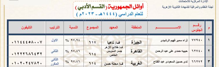كفر الشيخ تحصد 3 مراكز بين أوائل الثانوية الأزهرية لعام 2023