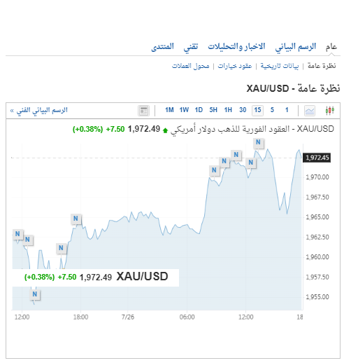 كما انخفض سعر الذهب عند المستوى 1972.49 دولار للأونصة ليشهد تغيرات حول هذا المستوى، كما سجل استقرار بنسبة تقدر بـ 0.38 %، ليسجل عيار 24 حوالي 2454 جنيه للجرام الواحد في السوق المحلي المصري.