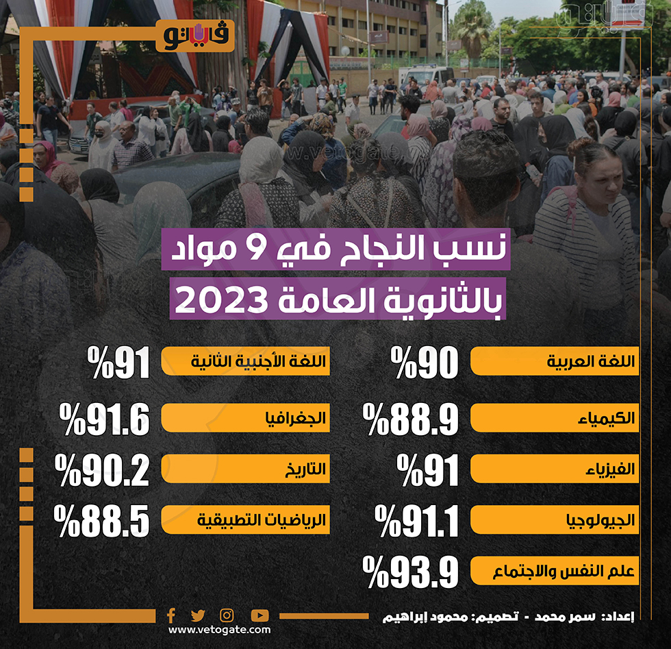 نسب النجاح في 9 مواد بالثانوية العامة 2023 (انفوجراف)