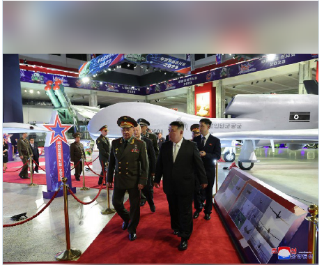 وحسبما كشفت الصور التي نشرها الإعلام الكوري الشمالي، فقد أظهر كيم لشويجو خلال زيارة "معرض الأسلحة 2023" أحدث الطائرات بدون طيار والصواريخ الباليستية العابرة للقارات التي تصنعها بيونج يانج.