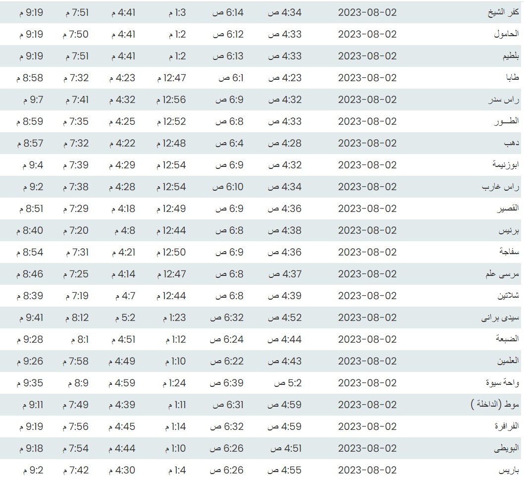 مواقيت الصلاة اليوم بتوقيت أسيوط