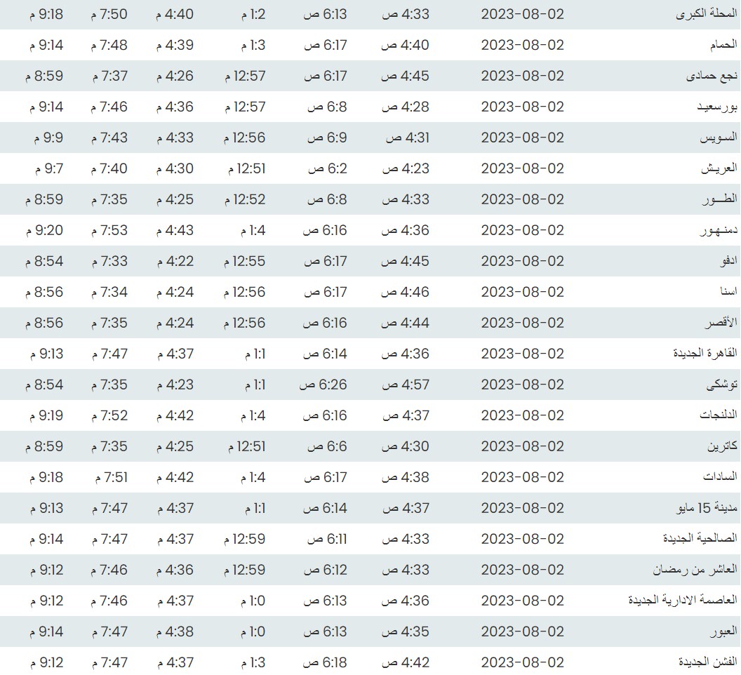 مواقيت الصلاة اليوم بتوقيت القاهرة