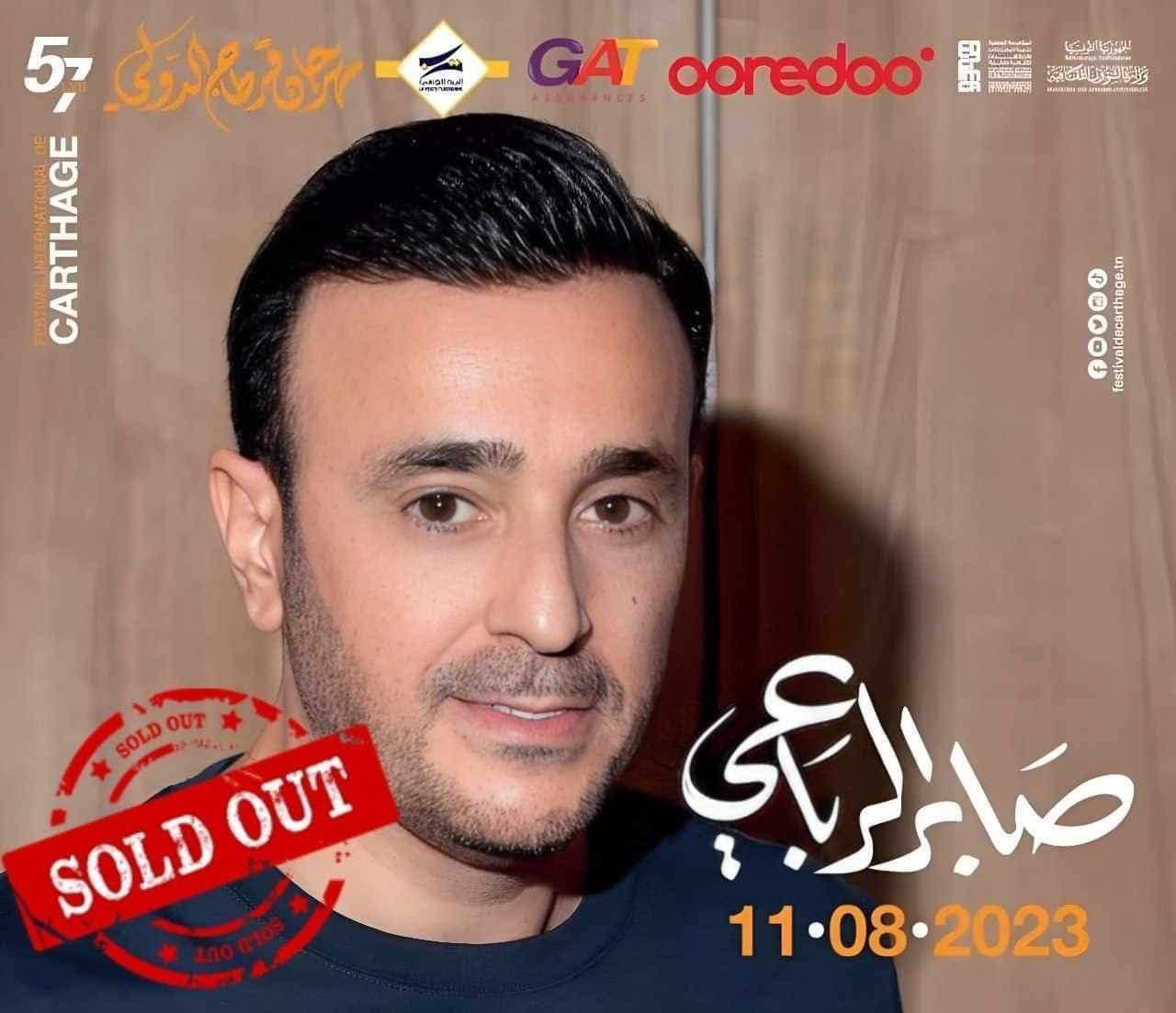 أعلن الفنان التونسي صابر الرباعي عبر حسابه الشخصي على موقع التواصل الاجتماعي "فيس بوك" عن نفاد تذاكر حفله المقرر إقامته يوم 11 أغسطس المقبل ضمن فعاليات مهرجان قرطاج الدولي بدولة تونس.