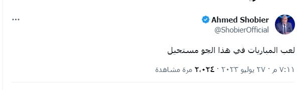 ونشر شوبير عبر صفحته الرسمية على تويتر قائلًا: ( لعب المباريات في هذا الجو مستحيل )
