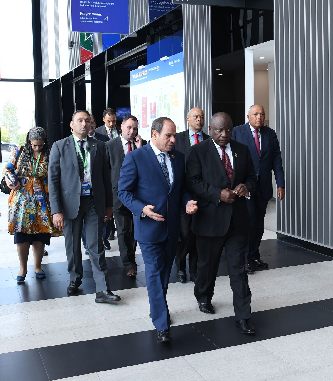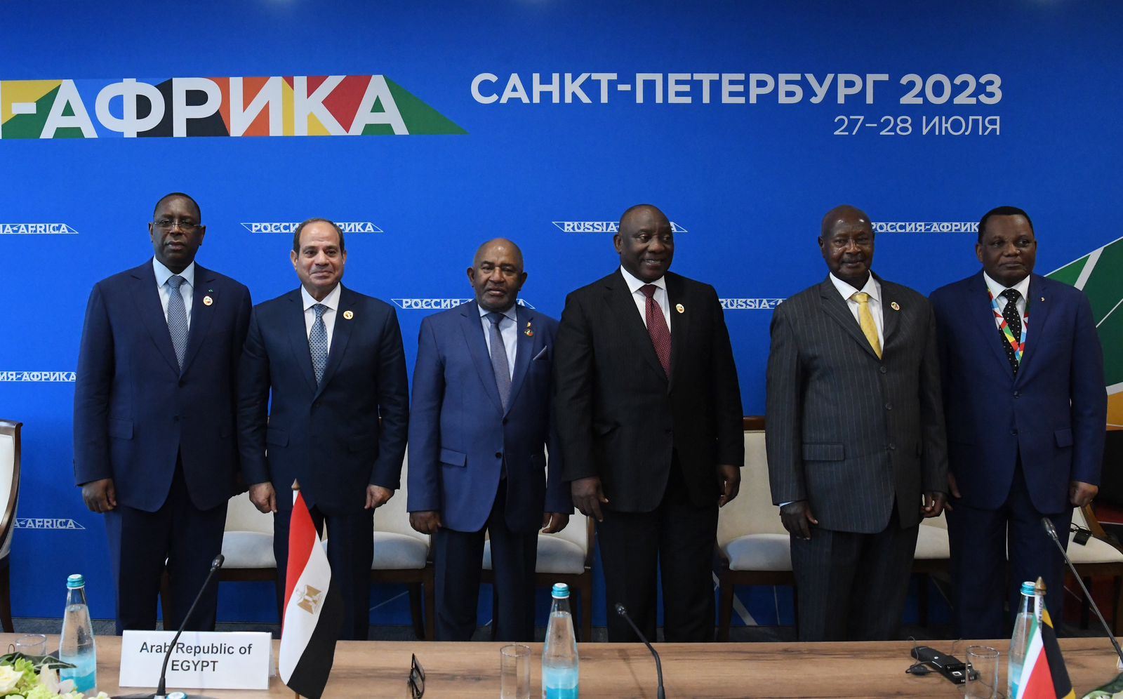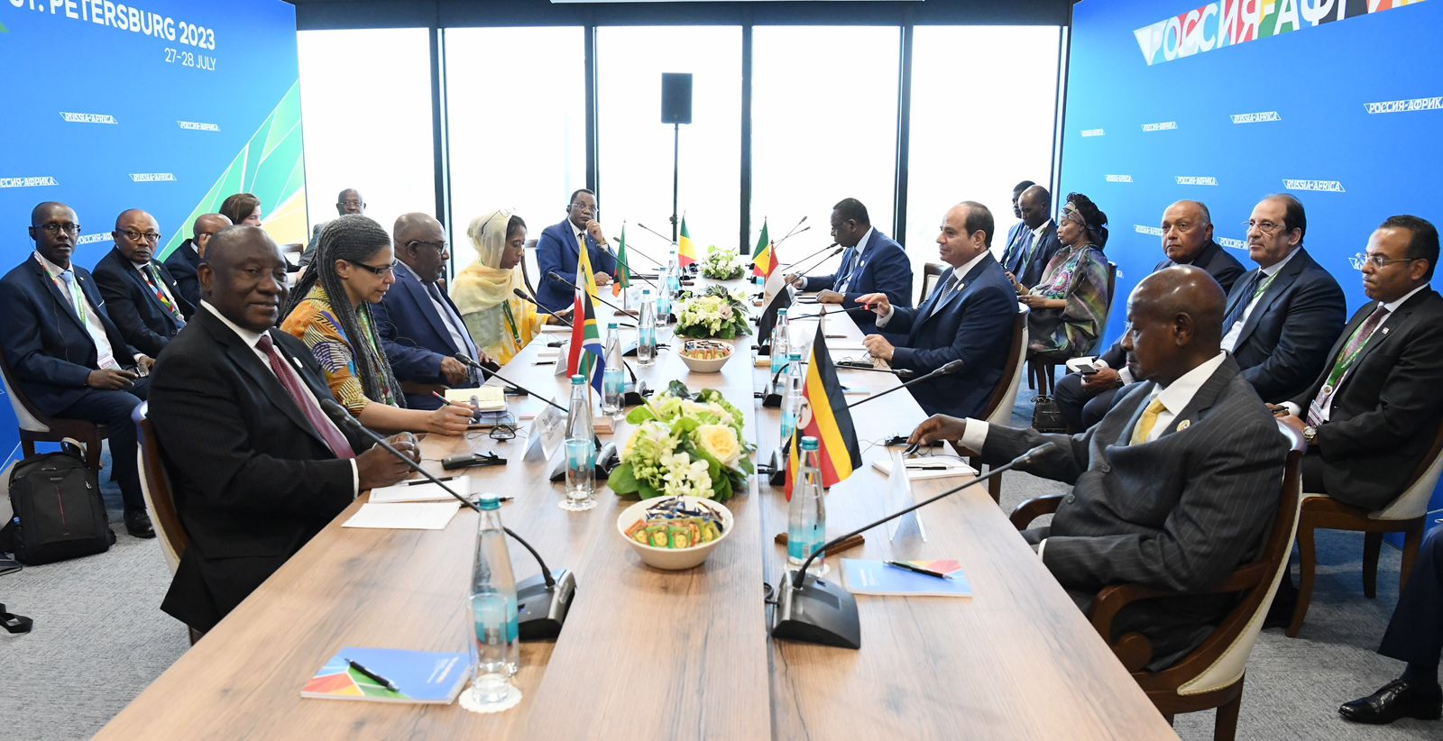 كما شارك الرئيس عبد الفتاح السيسي اليوم، بمدينة سان بطرسبرج، في اجتماع مع قادة الدول الأفريقية لمبادرة الوساطة لتسوية الأزمة الروسية الأوكرانية؛ الرئيس "عثمان غزالي" رئيس جزر القُمُر الرئيس الحالي للاتحاد الأفريقي، والرئيس الجنوب أفريقي "سيريل رامافوزا"، والرئيس الكونغولي "دينيس ساسو نيجيسو"، والرئيس السنغالي "ماكي سال"، والرئيس الأوغندي "يوري موسيفيني".