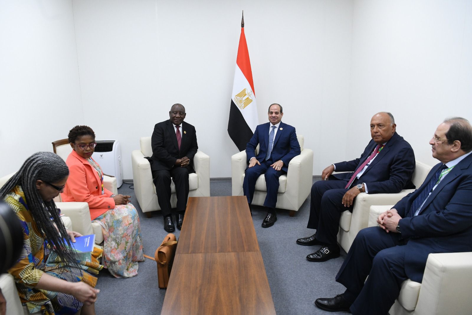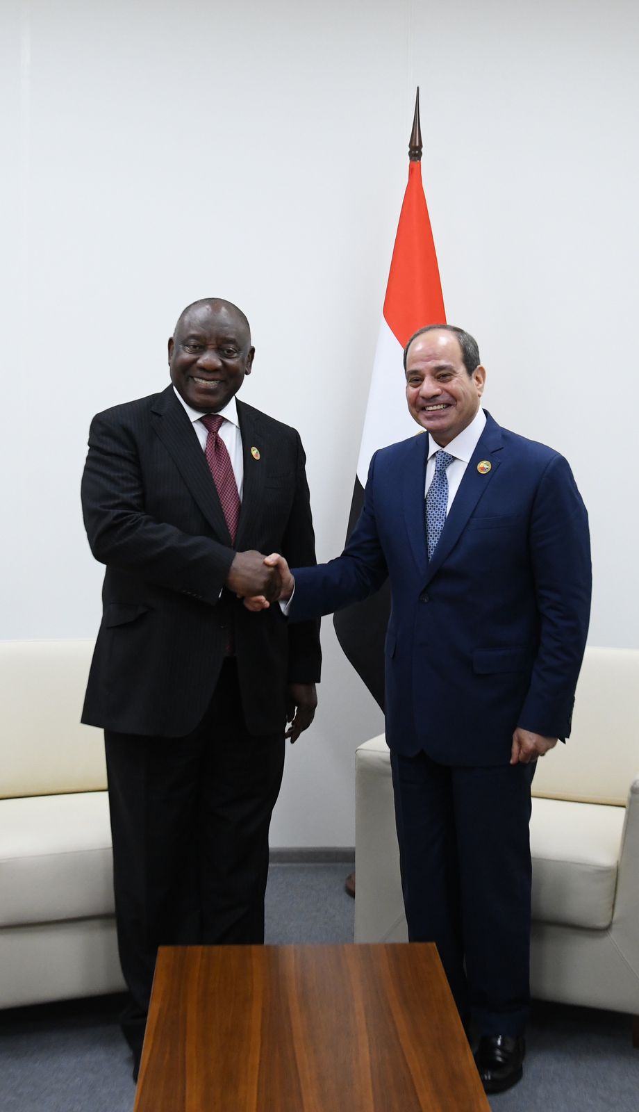 كما التقى الرئيس عبد الفتاح السيسي اليوم مع الرئيس "سيريل رامافوزا"، رئيس جمهورية جنوب أفريقيا، على هامش انعقاد القمة الأفريقية الروسية الثانية بمدينة سان بطرسبرج.