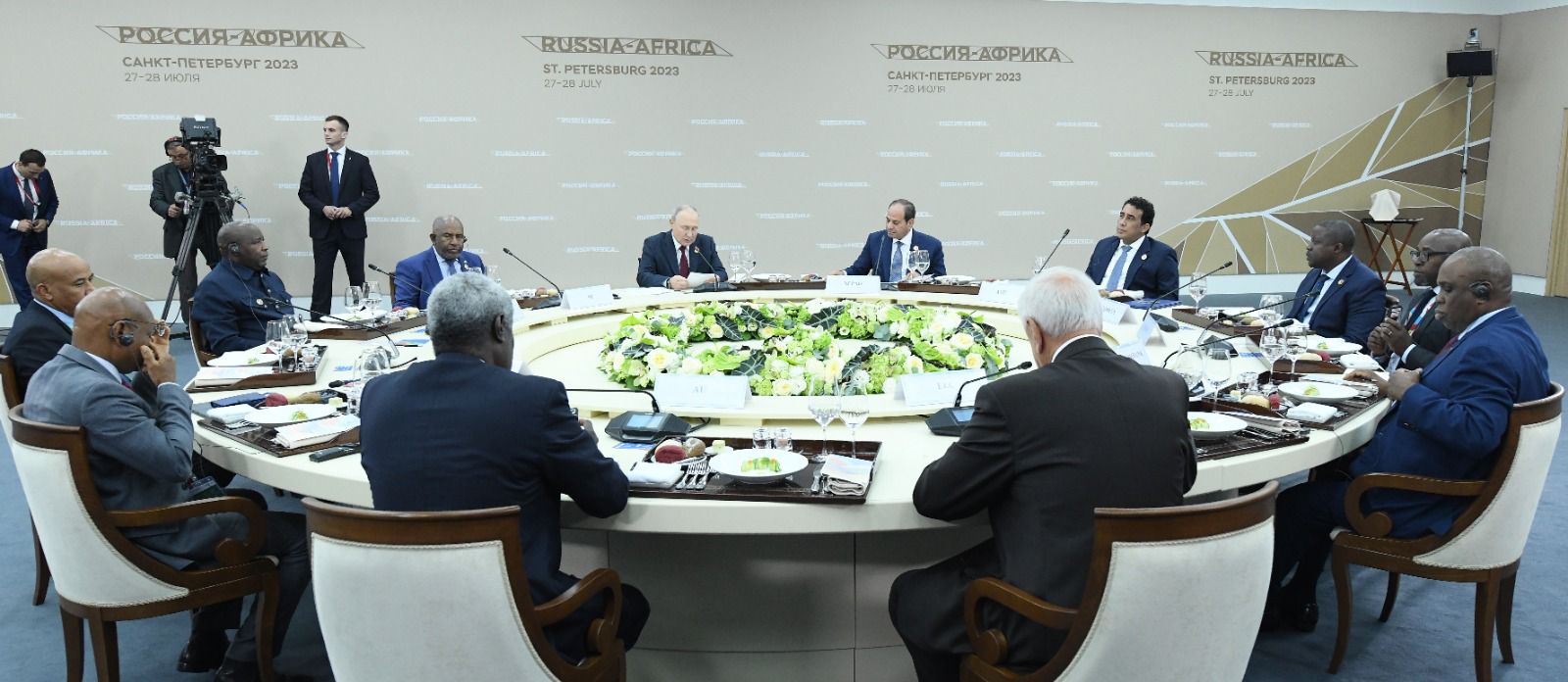 وشارك الرئيس عبد الفتاح السيسي اليوم، بمدينة سان بطرسبرج، في غداء عمل مع الرئيس الروسي فلاديمير بوتين، وذلك إلى جانب رؤساء الدول والحكومات الأفارقة من رؤساء التجمعات الاقتصادية الأفريقية المختلفة.