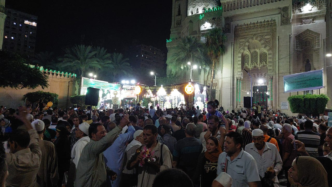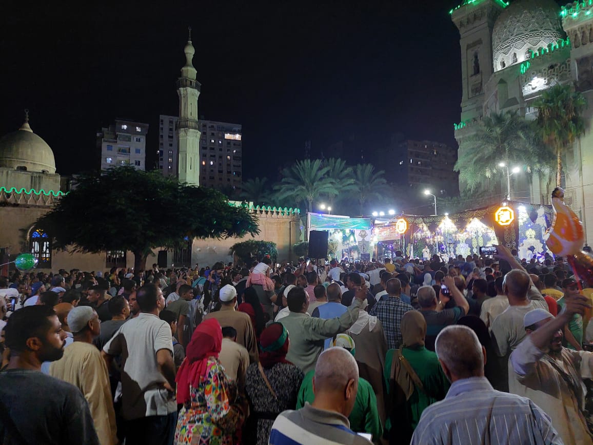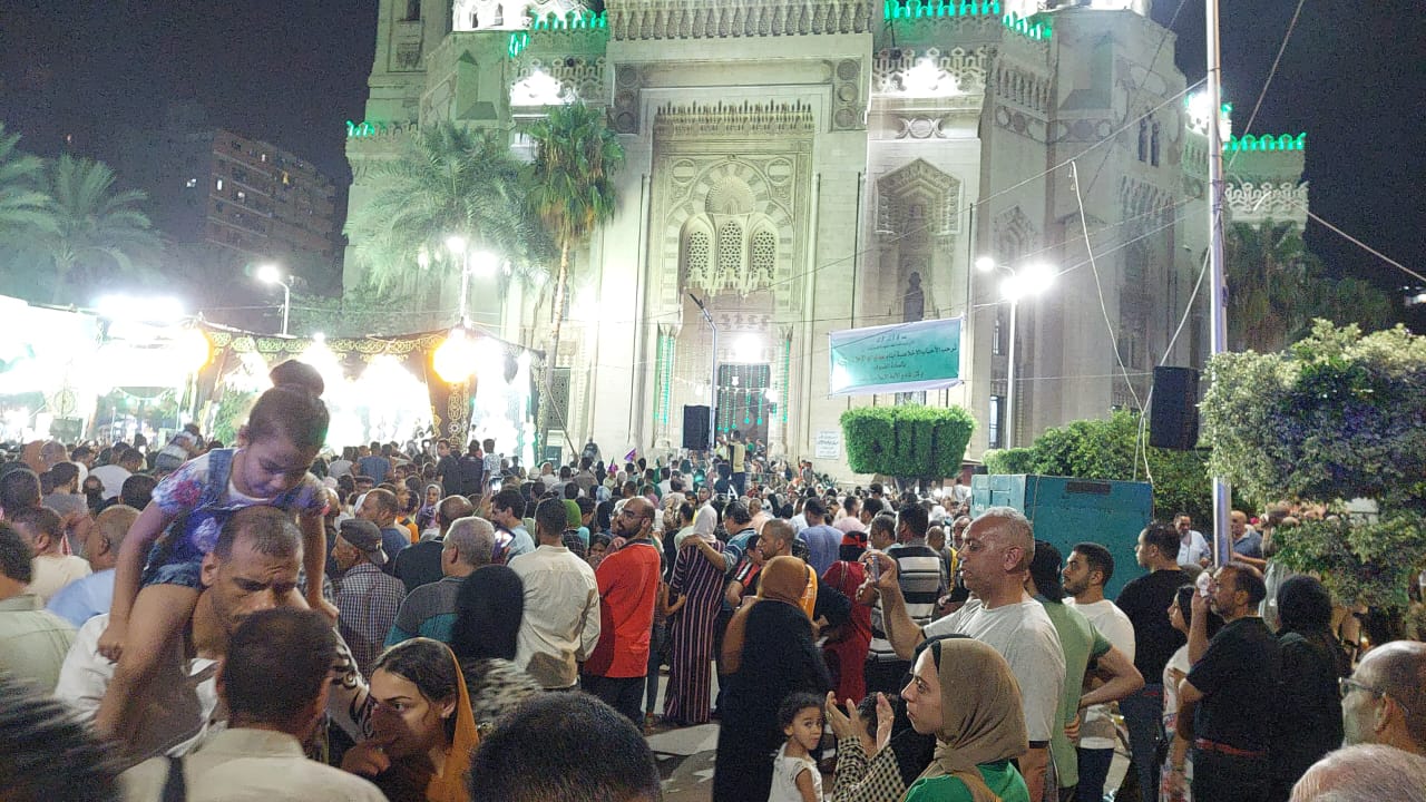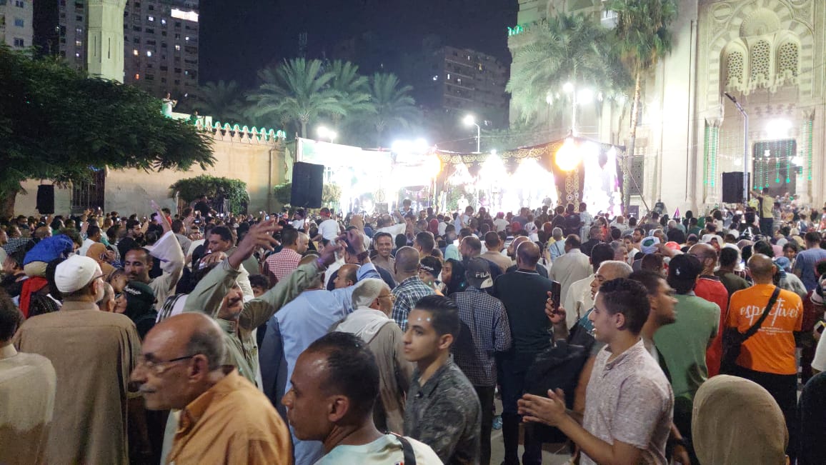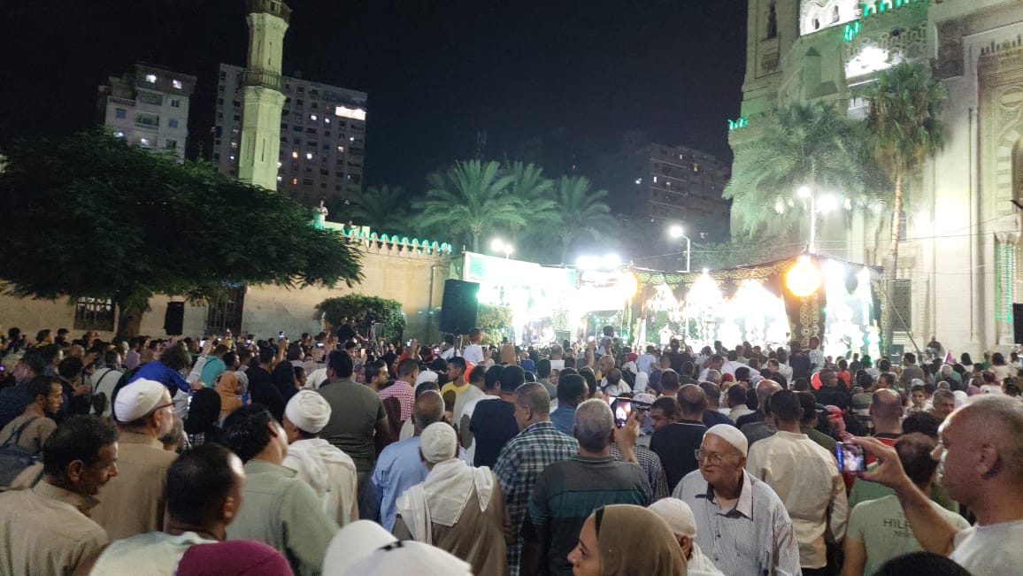 واكتظت ساحة المسجد بالآلاف من أتباع الطرق الصوفية، الأرض أمام مسجد المرسي لحضور احتفالات الليلة الختامية، وسط انسجام تام بابتهالات محمود التهامي والذكر.