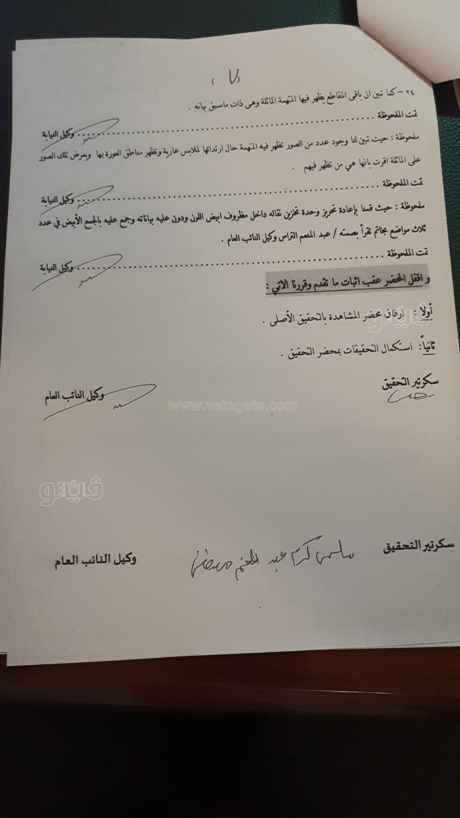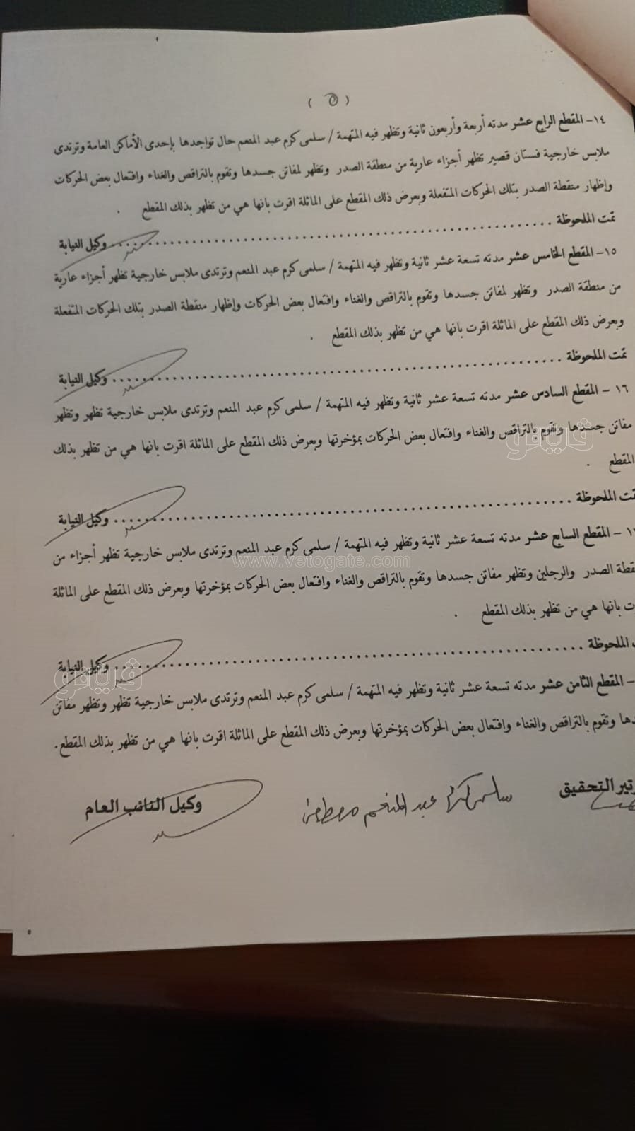 وأردفت التحقيقات عن وجود بعض الصور التي تظهر فيها المتهمة حال ارتدائها لملابس عارية وتظهر مناطق العورة بها.