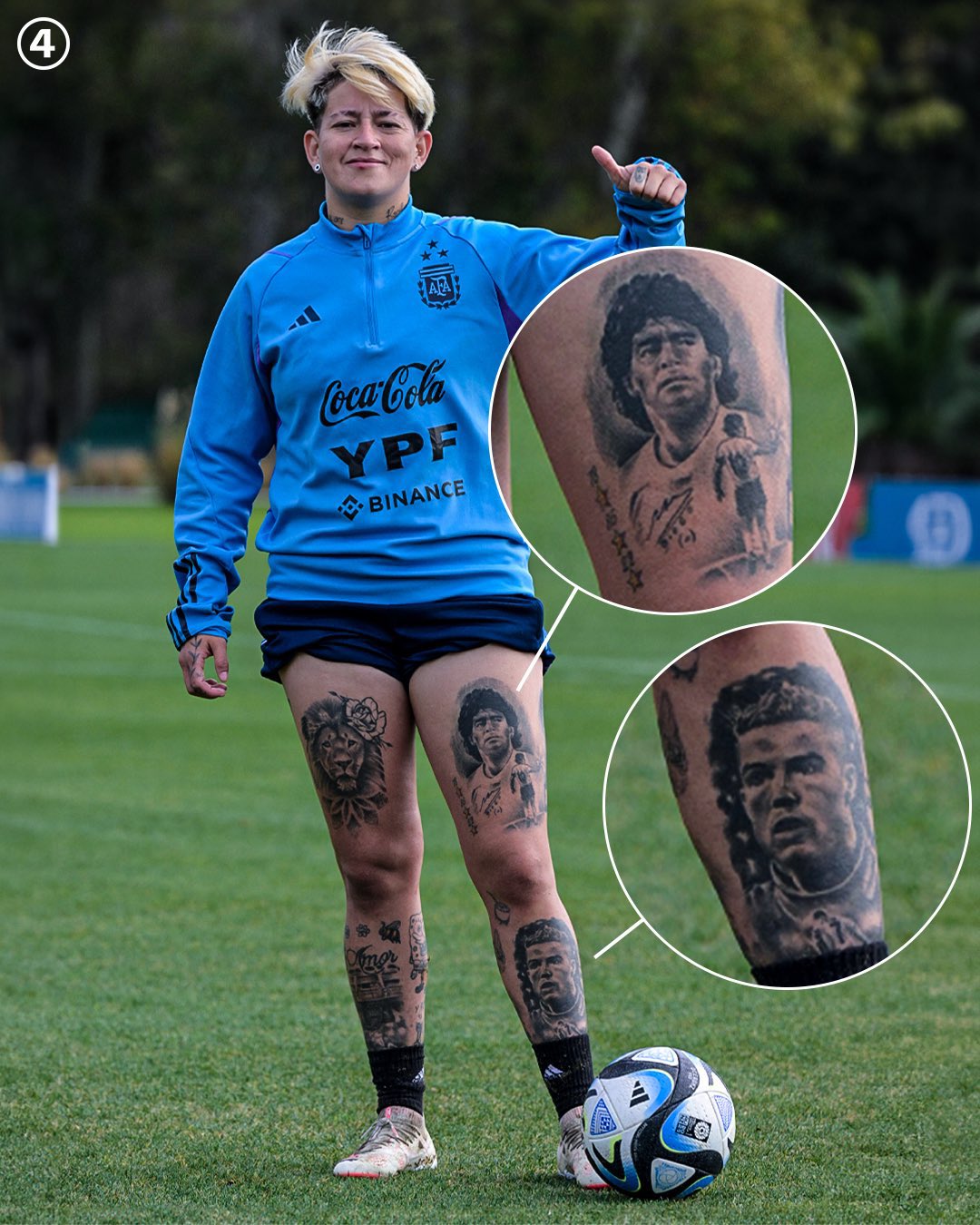 وقالت اللاعبة البالغة من العمر 25 عامًا، حسب وكالة «رويترز، والتي تضع أيضًا وشمًا للأسطورة الأرجنتيني دييجو مارادونا على فخذها اليسرى، إنها تلقت انتقادات على وسائل التواصل الاجتماعي، بسبب وشم رونالدو غريم ميسي الأزلي.
