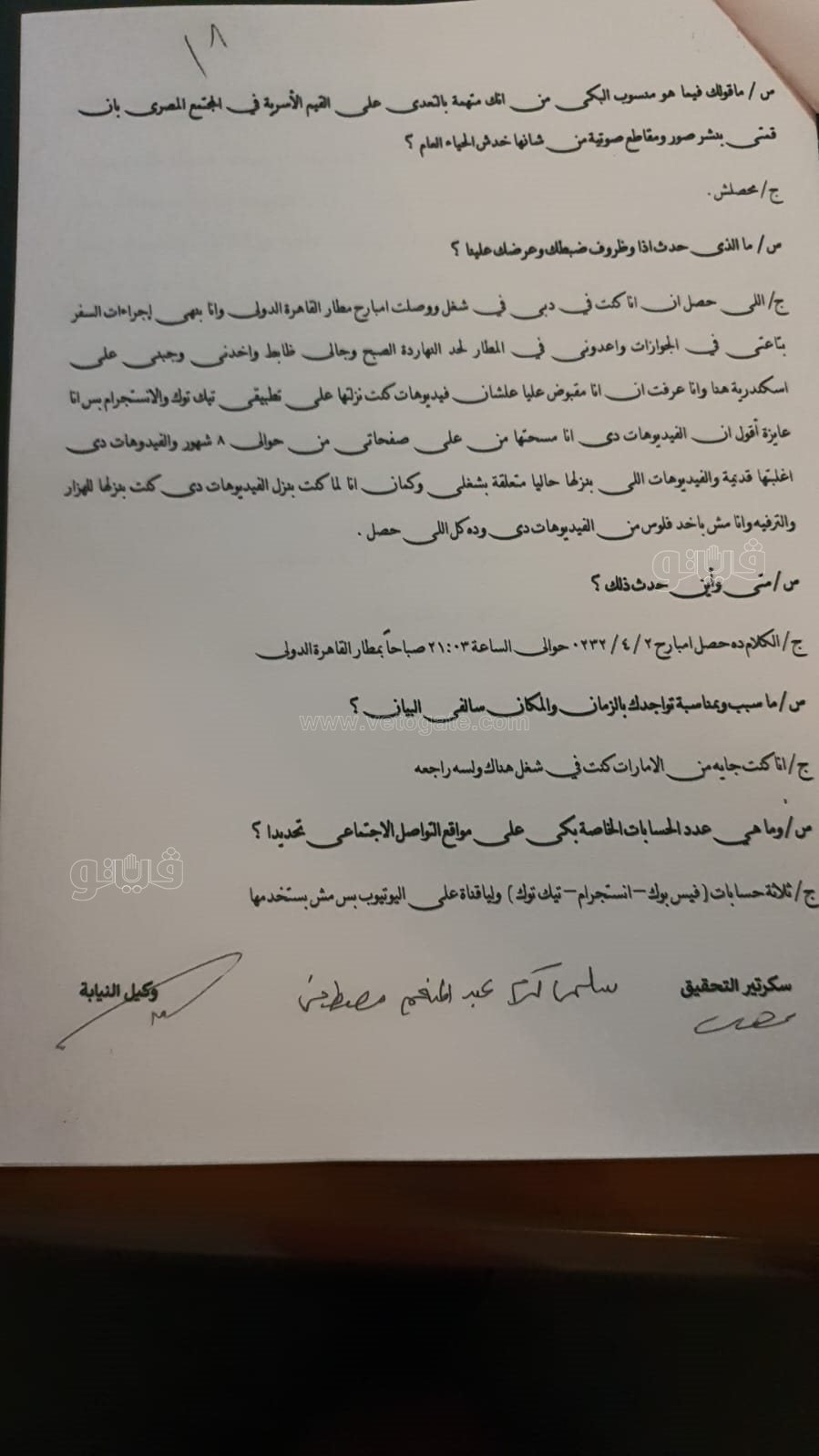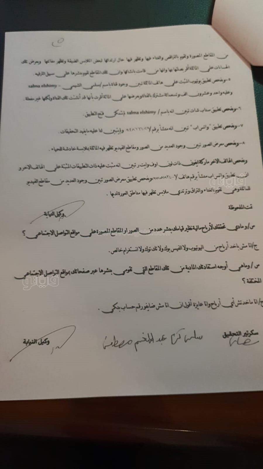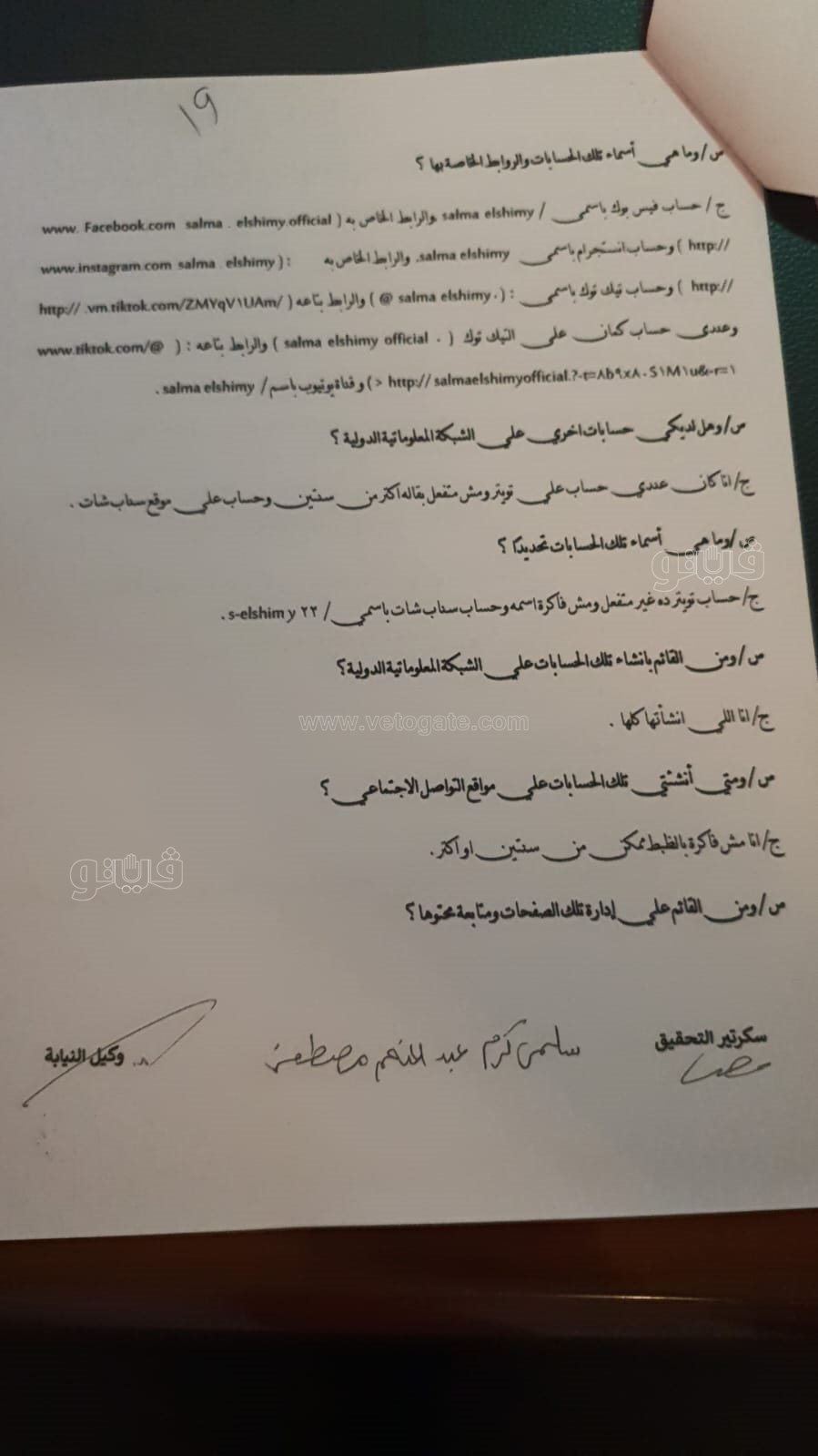 حصلت "فيتو" على نسخة من تحقيقات النيابة في القضية رقم 188 لسنة 2023، والمتهمة فيها البلوجر سلمى الشيمي.