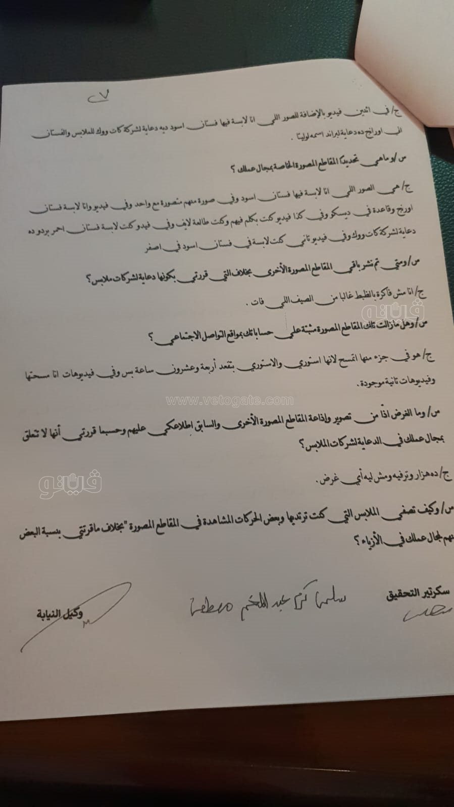 سلمى الشيمي خلال التحقيقات: أنا بلبس اللي بيعجبني (مستندات)