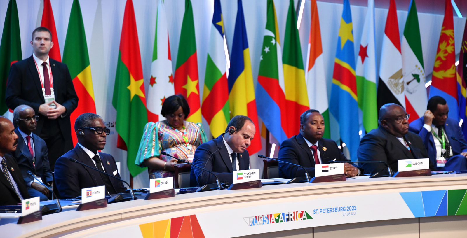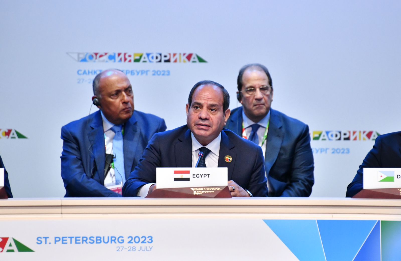 شارك الرئيس عبد الفتاح السيسي، بمدينة سان بطرسبرج، في اجتماع مع قادة الدول الأفريقية لمبادرة الوساطة لتسوية الأزمة الروسية الأوكرانية؛ الرئيس "عثمان غزالي" رئيس جزر القُمُر الرئيس الحالي للاتحاد الأفريقي، والرئيس الجنوب أفريقي "سيريل رامافوزا"، والرئيس الكونغولي "دينيس ساسو نيجيسو"، والرئيس السنغالي "ماكي سال"، والرئيس الأوغندي "يوري موسيفيني".