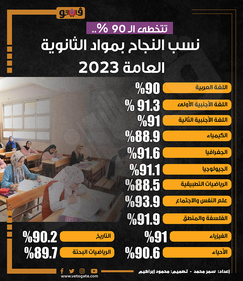 تتخطى الـ 90%.. نسب النجاح بمواد الثانوية العامة 2023 (انفوجراف)