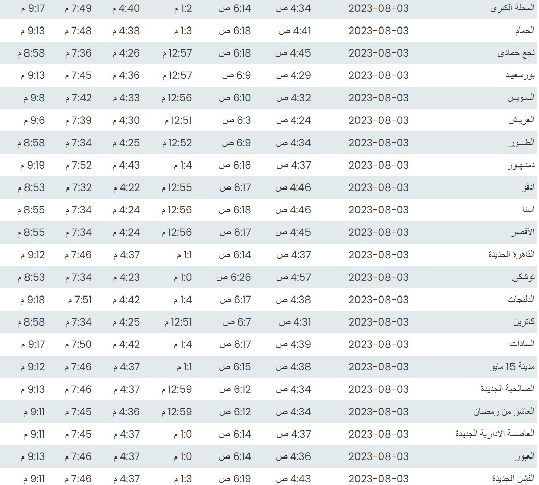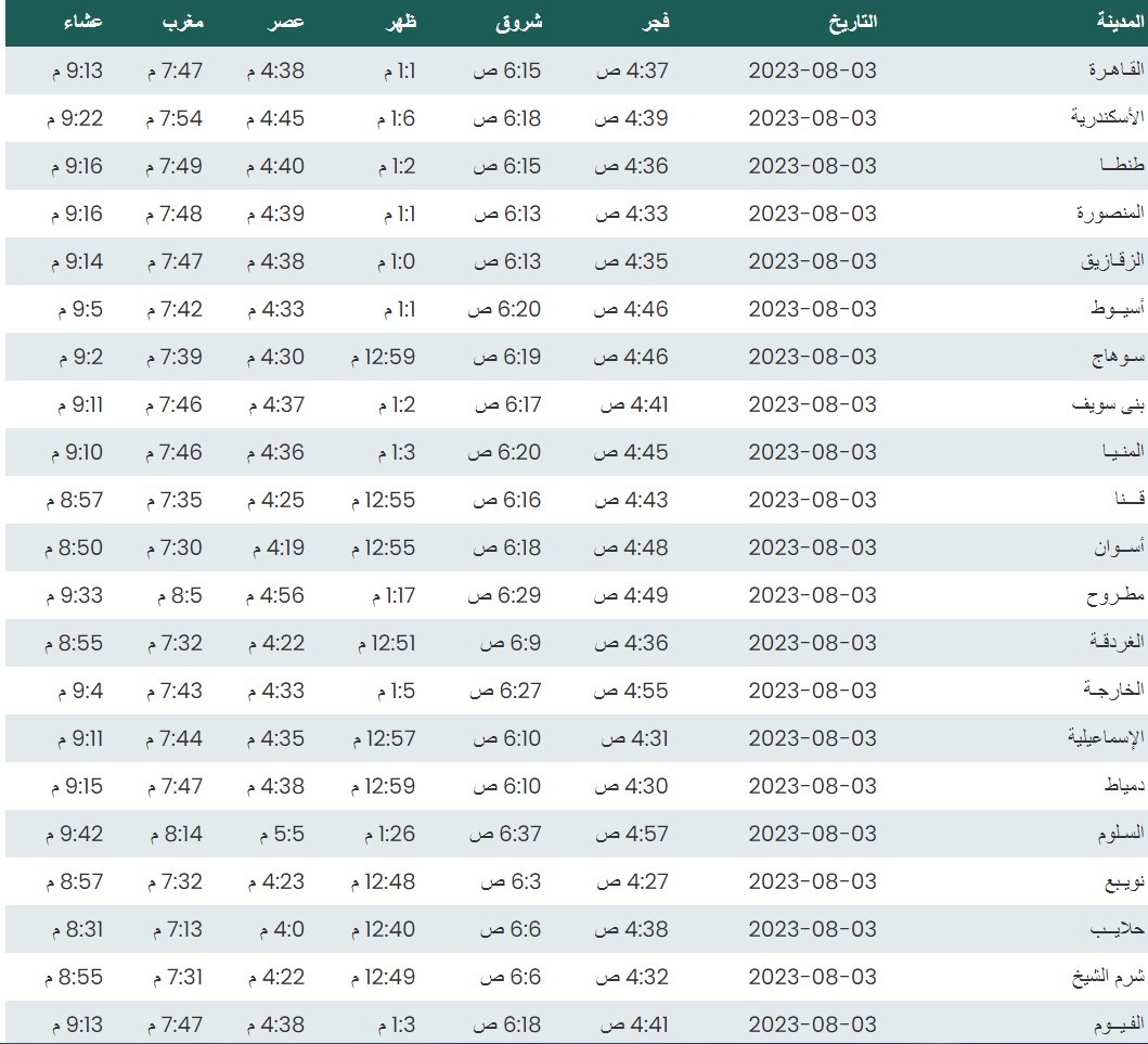 مواقيت الصلاة اليوم بتوقيت القاهرة
