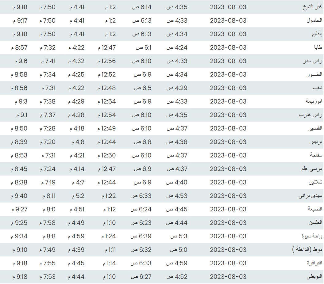 مواقيت الصلاة اليوم بتوقيت الإسكندرية