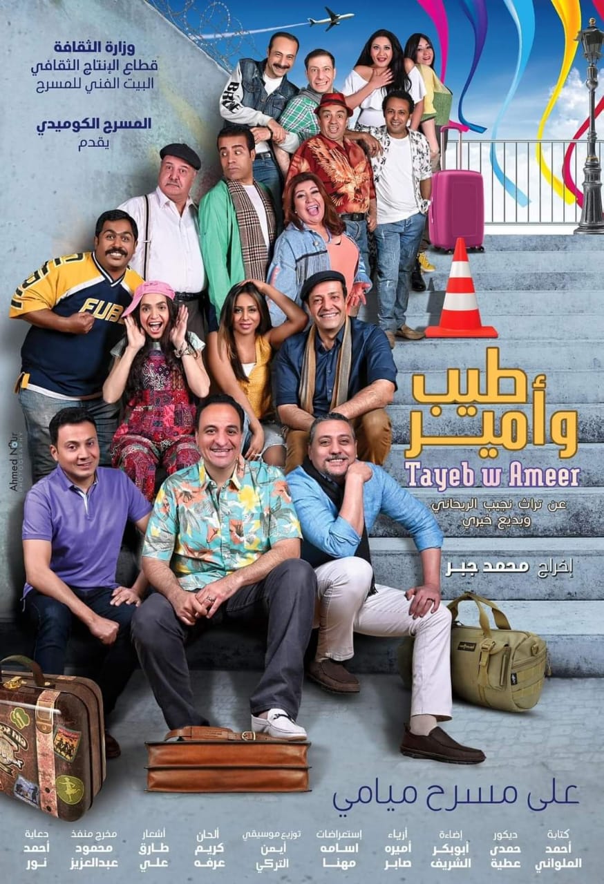 أما فرقة المسرح الكوميدي فتقدم عرض "طيب وأمير "، كتابة أحمد الملوانى وإخراج محمد جبر، يعرض فى الساعة الثامنة من مساء يومي الخميس والجمعة الموافق ٣و٤ أغسطس على مسرح ميامى.