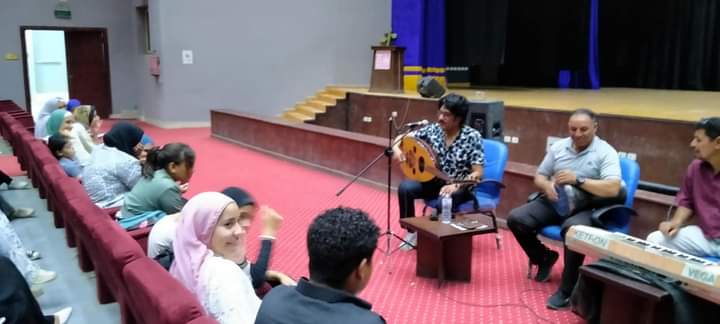 وعلى مسرح قصر ثقافة موط واصل الفنان والمايسترو حسام حسنى تدريباته الموسيقية وقام بالقاء محاضره عن بدايات الموسيقي وتطورها وأنواعها ، بالإضافة إلى التدريب على موشح ياغريب الدار ومراجعة على بعض الأغانى التى تم التدريب عليها وتتنوع ما بين الوطنى والنوبي والصعيدى وأغانى من تراث الواحات، بحضور المخرج محسن سعيد المشرف الإقليمى للمشروع بالداخلة.