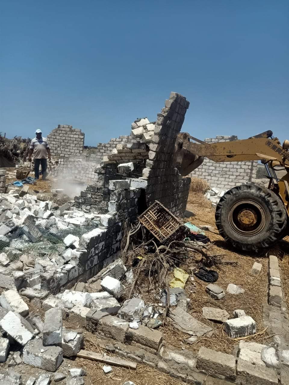 واثناء مرور الحملة بالحي الاول تم رفع الاشغالات والتعديات لمحل طيور ودواجن مخالف لشروط التراخيص بالحي الاول