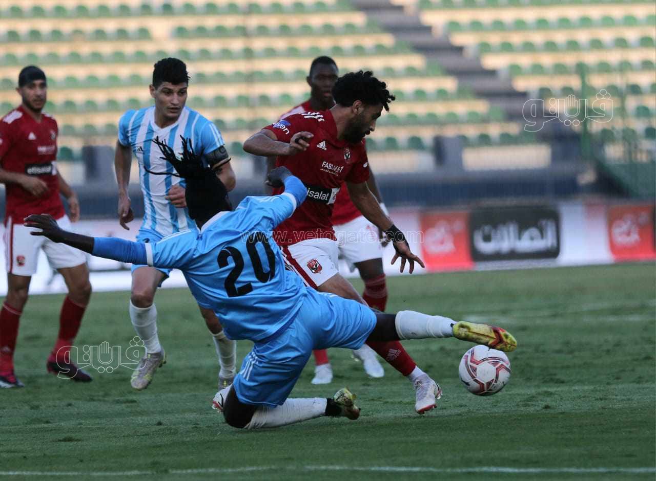 وفي الدقيقة 33 واصل لاعبو الأهلي التصويب على مرمى محمد مجدي وجاءت هذه المرة من أفشه الذي سدد كرة قوية ولكن جاءت بجانب العارضة.