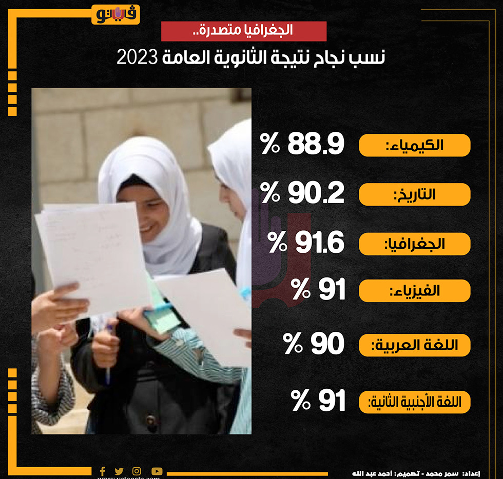 ونجح 91.6% من الطلاب الذين أدوا امتحان الجغرافيا للثانوية العامة، منهم 1.9% فقط حصلوا على 95% فأكثر من درجات المادة.