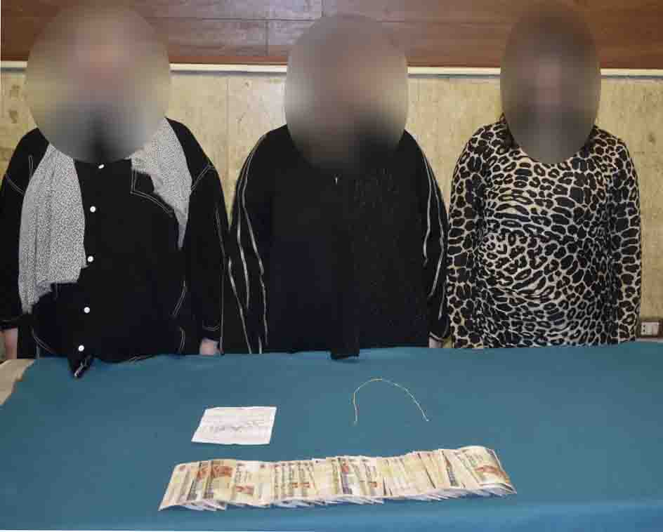 وبالانتقال تمكنت الأجهزة الأمنية من ضبطهن وتبين أنهن ( إحدى السيدات "لها معلومات جنائية" ونجلتيها، مقيمات بدائرة قسم شرطة الزاوية) وضُبط بحوزتهن (سلسلة ذهبية "مُقلدة" - فاتورة شراء لذات السلسلة "مُزورة" - مبلغ مالى).