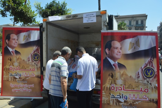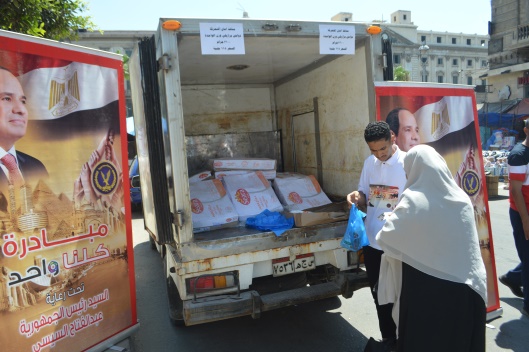 كما تم التنسيق مع عدد من السلاسل التجارية الكبرى المشاركة فى المبادرة بإجمالى (1364) فرع على مستوى الجمهورية، فضلًا عن إطلاق قوافل سيارات مجهزة بـ 5 سيارات لكل قافلة وذلك لطرح السلع الغذائية وتستهدف تلك القوافل المناطق الأكثر إحتياجًا بنطاق محافظات "القاهرة – الجيزة – القليوبية".