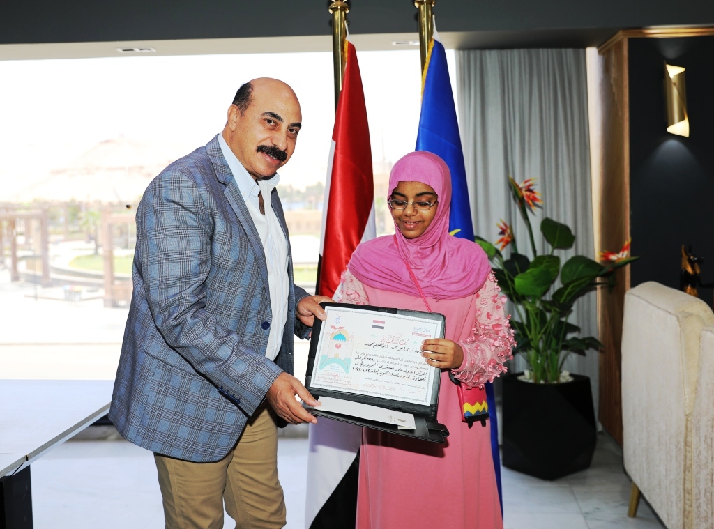 وقام المحافظ بمنح الطالبة هاجر شهادة تقدير وميدالية التميز، وأيضًا مكافأة مالية قدرها 10 آلاف جنيه تقديرًا لتفوقها الدراسى، وتحفيزًا لاستكمال تفوقها فى مرحلة التعليم الجامعى، مشيدًا بهذا التفوق والتميز الذي حققته هاجر لتكون نموذجا مشرفا يحتذى به، ونفتخر ونعتز به، وهو الذي يدفعنا للوقوف بجانبها وتقديم كافة التسهيلات والتيسيرات لها لتحقيق المزيد من النجاح والتفوق.