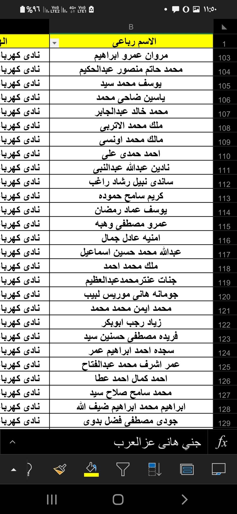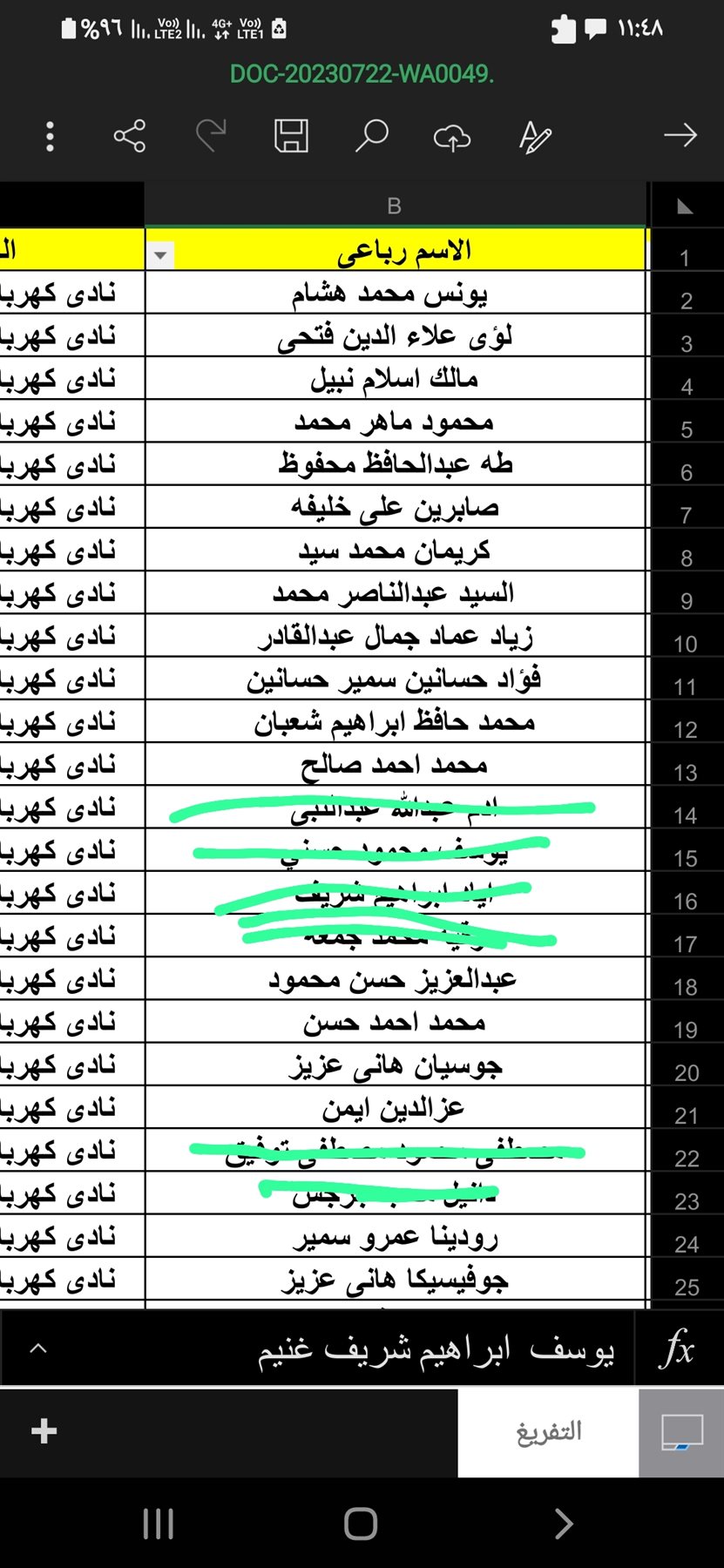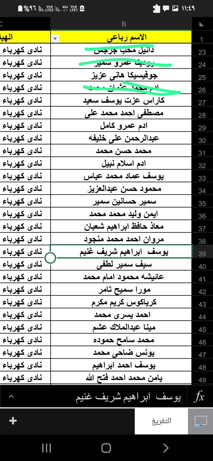 يوسف محمود كمال، مروان عاطف عبد المقصود، سارة صلاح محمد، روئ خالد علي.