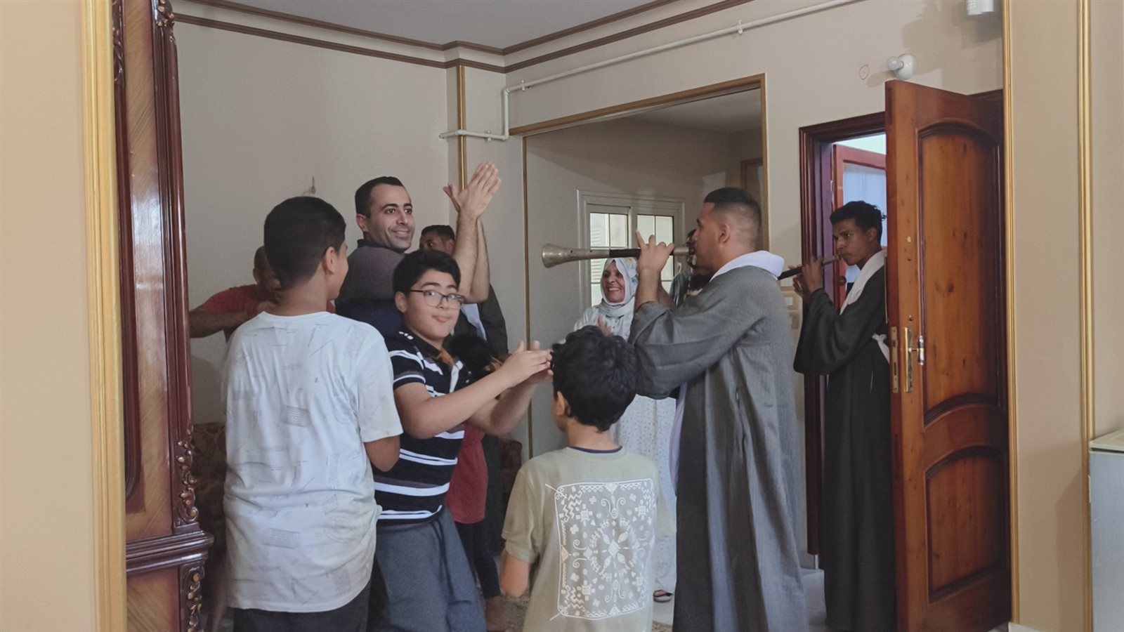 ورصدت فيتو وصلة رقص وطبل ومزمار بلدي داخل منزل الطالبة أميمة محمود أحمد عبد الله صالح ، واستقبلت أسرتها التهاني من الأقارب والجيران.
