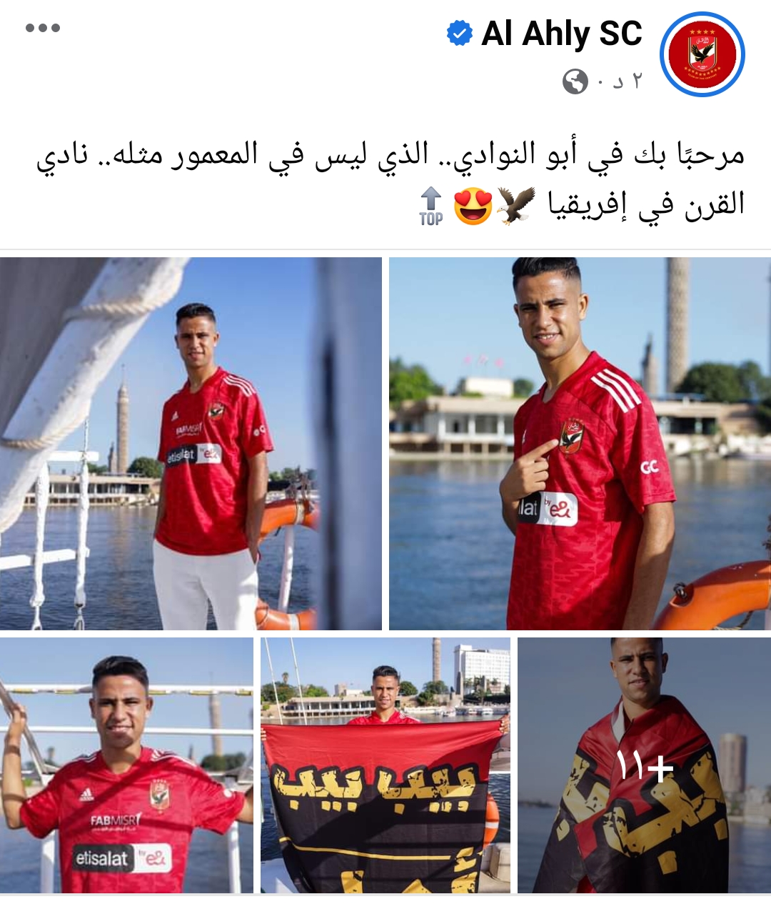 ونشر الحساب صورا للاعب على ضفاف النيل حيث تم تصوير الفيديو الخاص بانضمام اللاعب للنادي الأهلي.