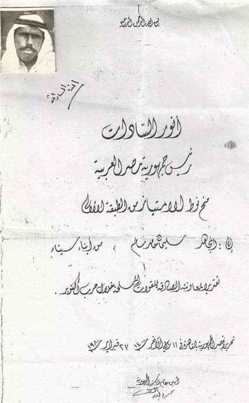 خلال السطور التالية تلقي فيتو الضوء علي حياة الفدائي سليمان حامد مسلم العرادي أحد أبناء قبيلة الترابين الذين يسكنون مدينة رأس سدر.