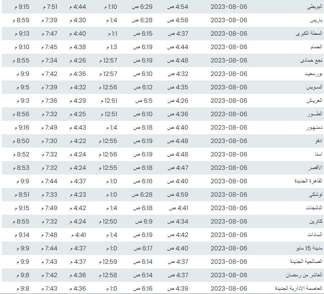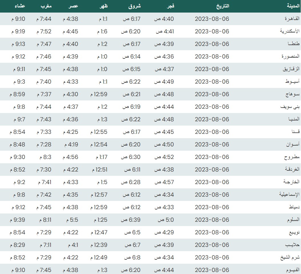 مواقيت الصلاة اليوم بتوقيت القاهرة