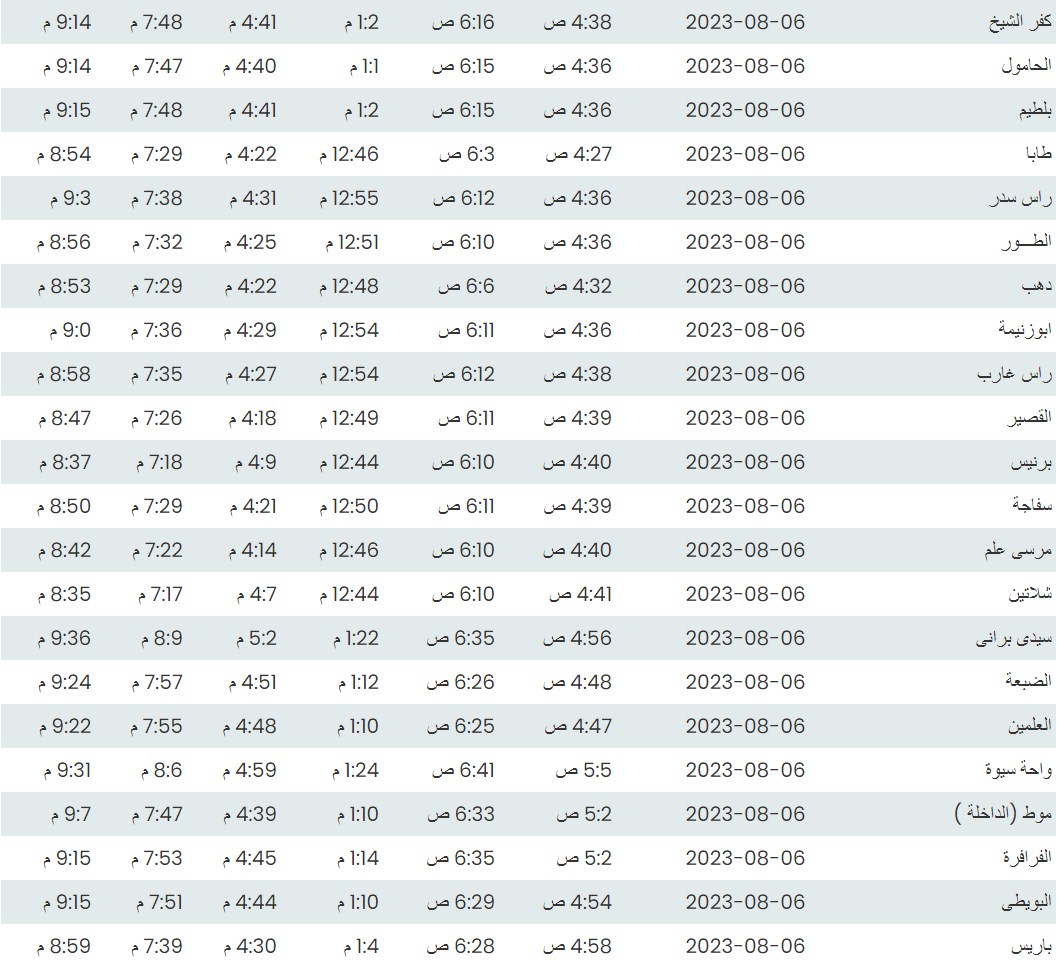 مواقيت الصلاة اليوم بتوقيت أسيوط