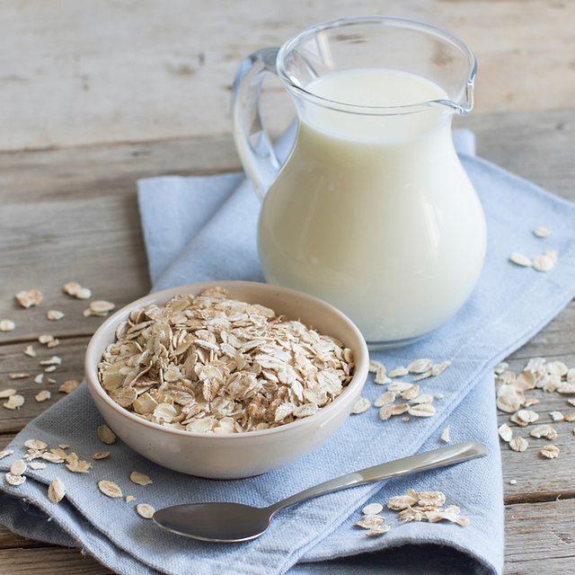 يحتوي الحليب على الدهون والكالسيوم وفيتامين د الذي عادة ما يكون غائبًا في الشوفان المعالج.