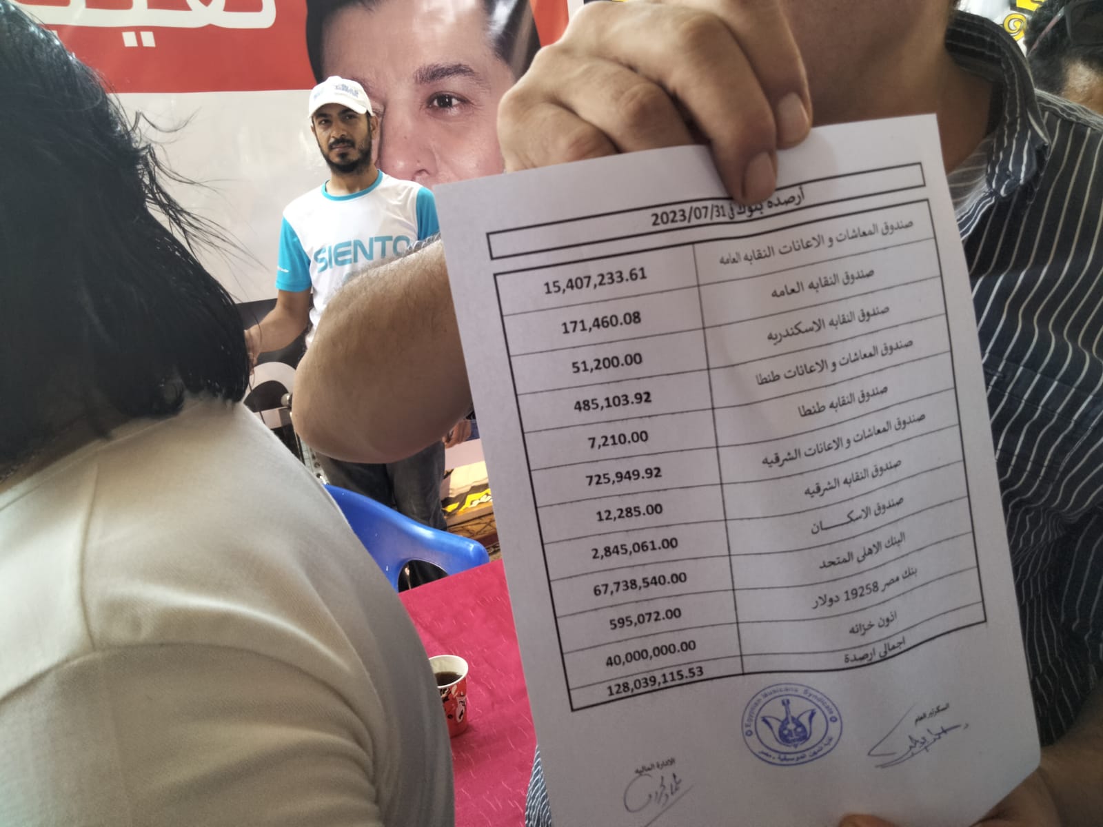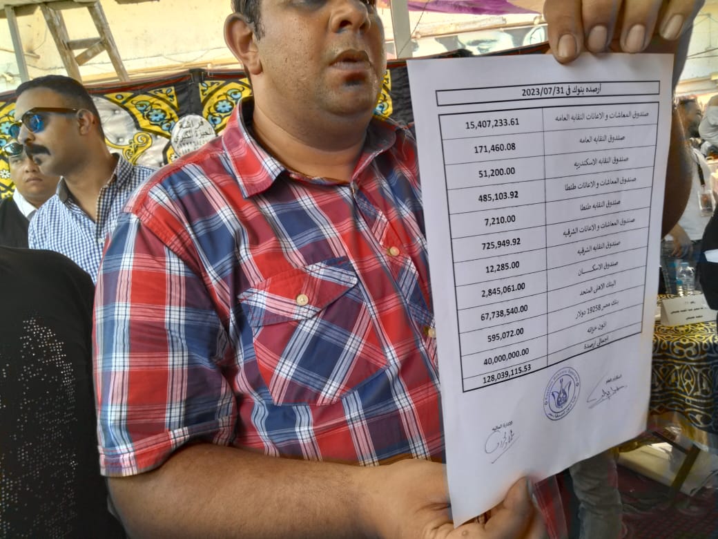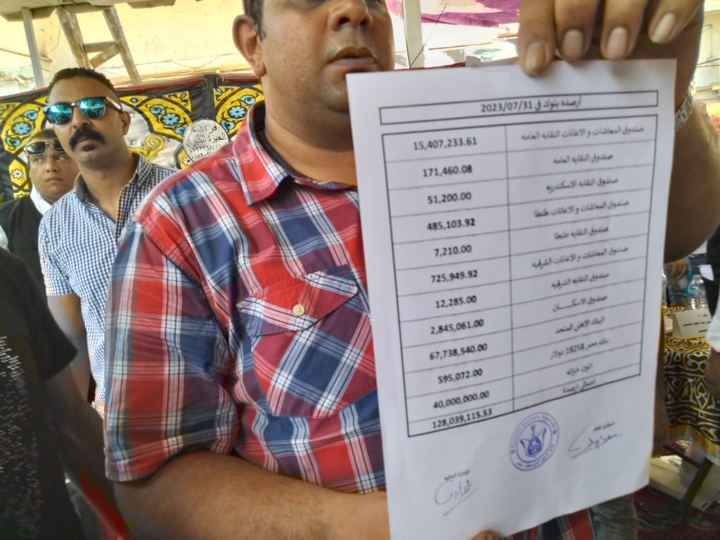 واستعرض مصطفي كامل مستندا يكشف أرصدة نقابة المهن الموسيقية وذلك في وجود المرشحين وأعضاء الجمعية العمومية.