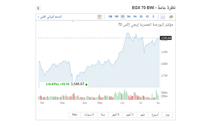 التحليل الفنى لمؤشرات البورصة المصرية اليوم الثلاثاء ، ارتفعت مؤشرات البورصة بمنتصف تعاملات اليوم الثلاثاء، أول تداولات شهر أغسطس، وصعد مؤشر "إيجي إكس 30" بنسبة 5.78 % عند مستوى 17601 نقطة، وصعد مؤشر الشركات الصغيرة والمتوسطة "إيجي إكس 70 متساوي الأوزان" بنسبة 14.52 % عند مستوى 3545.44 نقطة.