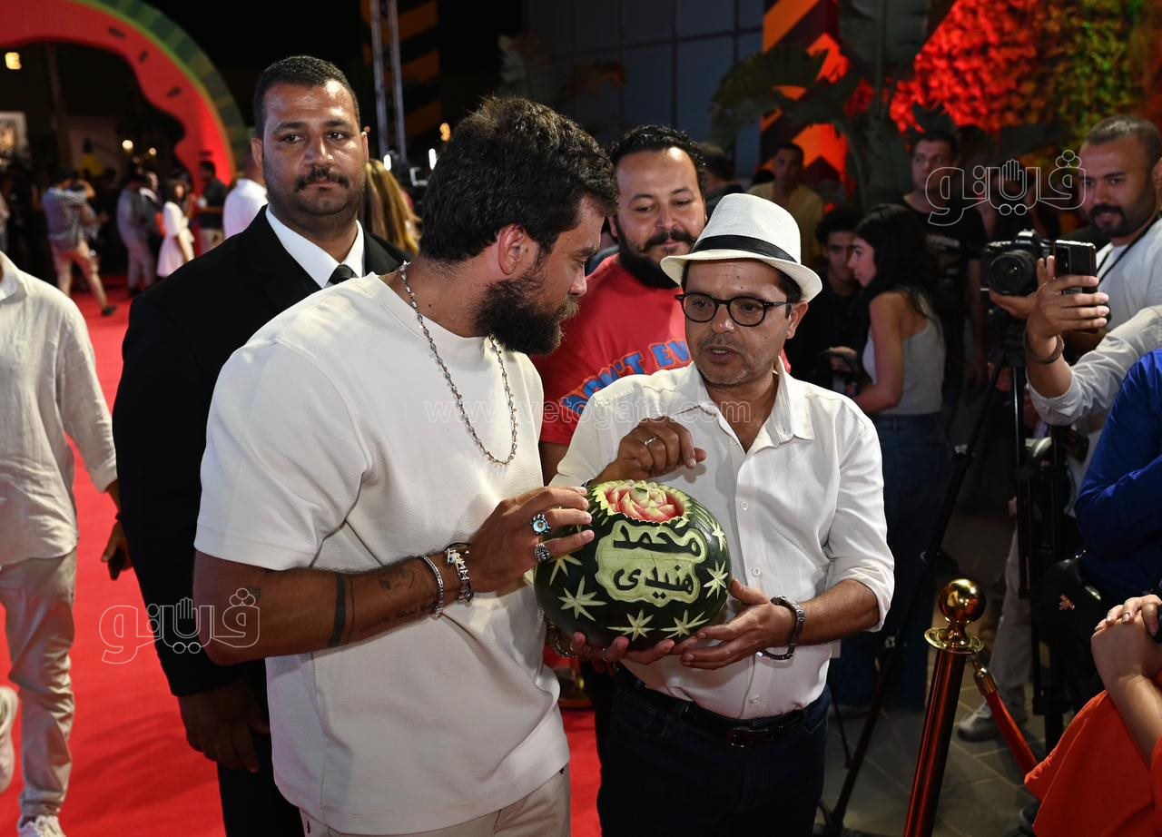 محمد هنيدي يظهر بالبطيخة أثناء العرض الخاص لـ مرعي البريمو (فيديو)