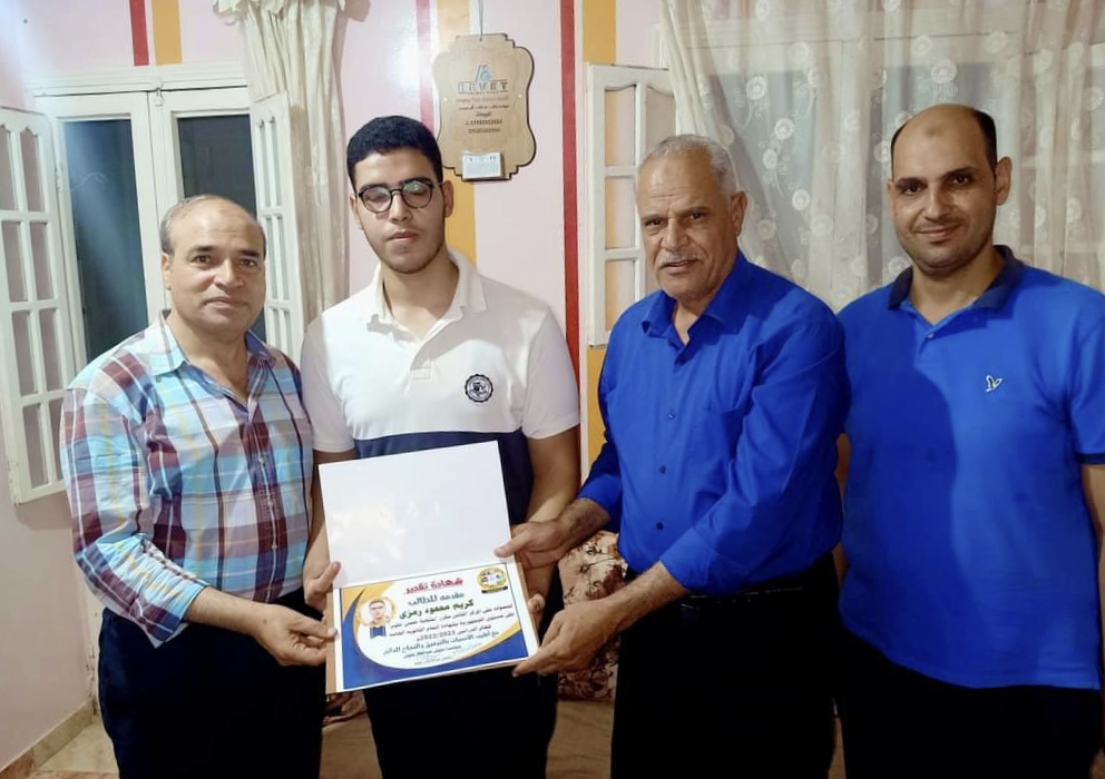 رئيس بني عبيد يكرم الطالب كريم رمزي الخامس على مستوى الجمهورية بالثانوية العامة (صور)