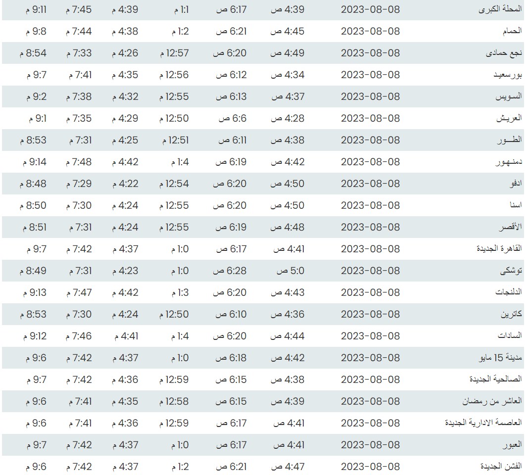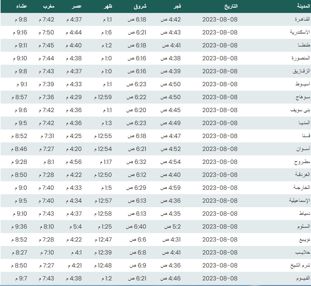 مواقيت الصلاة اليوم بتوقيت القاهرة