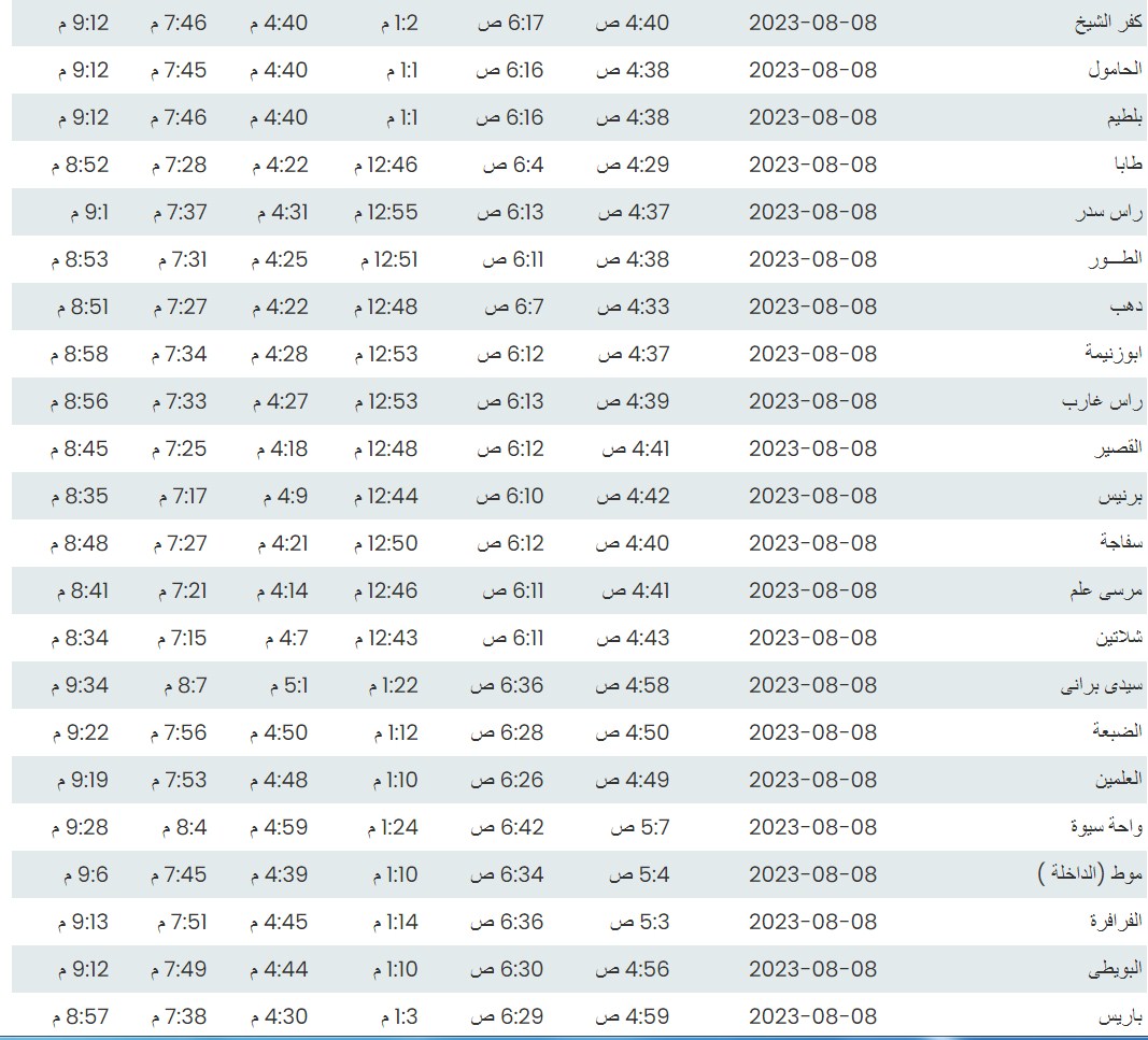 مواقيت الصلاة اليوم بتوقيت الإسكندرية