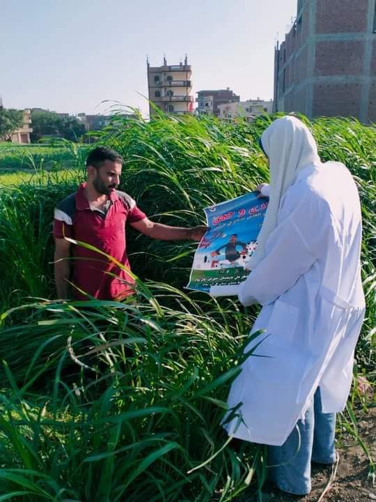 كما تم الاشتراك في عدد 1 قافلة سكانية بعمل توعيه ارشادية مصاحبه للقافله وتم عمل 271 توعيه ارشاديه مسبقه ومصاحبه للجان التحصين ضد مرضي الحمي القلاعيه وحمي الوادي المتصدع، وتم اختبار 1128 حيوان، وتحصين 35 لمرض البروسيلا، كما تم اختبار عدد 1027حيوان لمرض السل البقري.