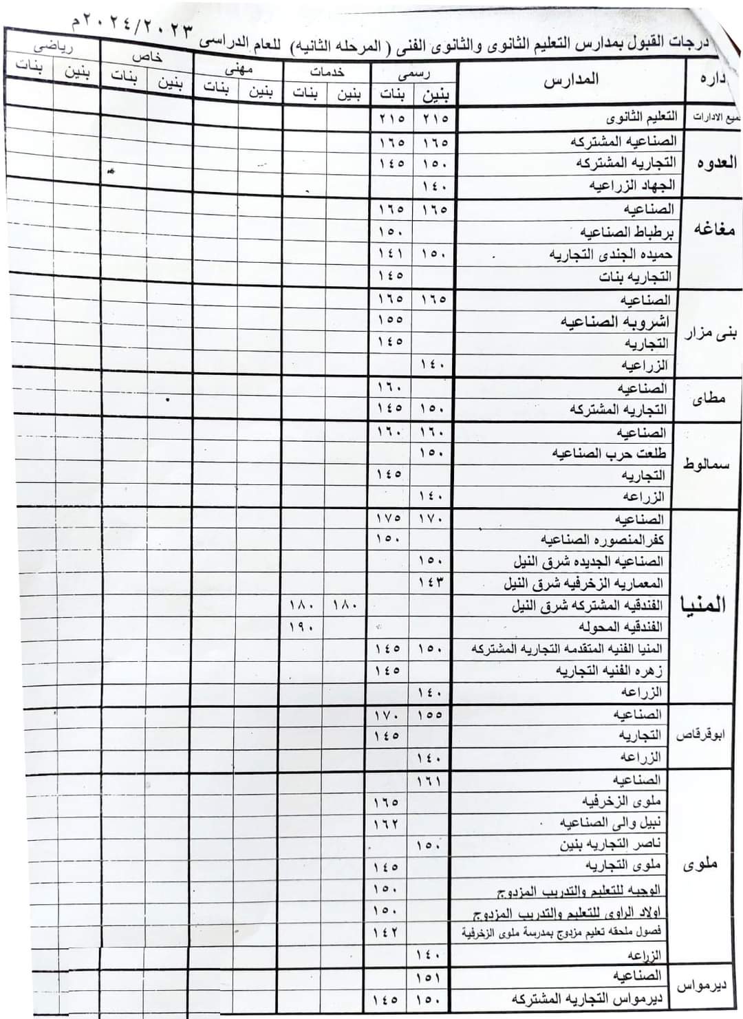 محافظ المنيا يخفض درجات القبول بعدد من مدارس الثانوي العام والفني