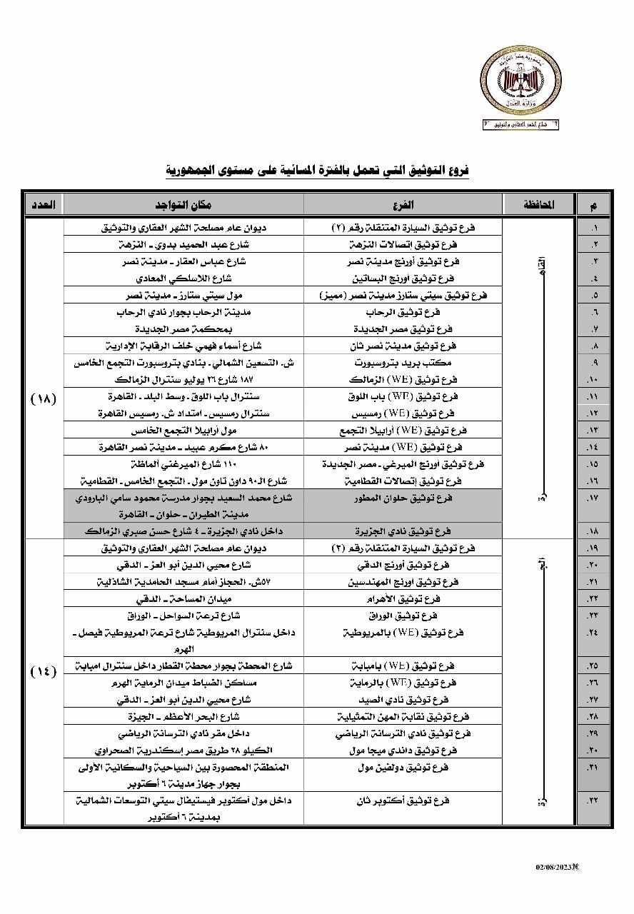 ويمكن أيضا استعراض باقي فروع التوثيق في محافظات الجمهوريه المختلفه